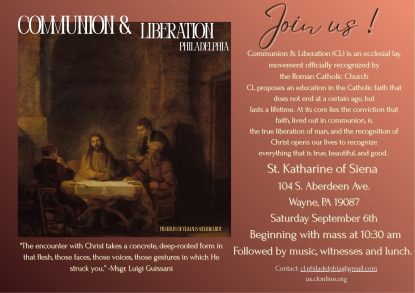 Experience a day of spiritual renewal through Mass, personal witness, music, and fellowship with Communion & Liberation at St. Katharine of Siena Parish in Wayne.