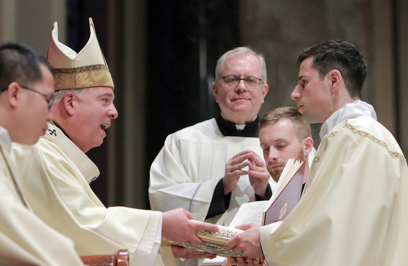 Seven men were ordained as Transitional Deacons for the Archdiocese of Philadelphia by Archbishop Nelson J. Pérez during the Rite of Ordination of Transitional Deacons Saturday, May 10 at the Cathedral Basilica of Saints Peter and Paul. After ordination, the men will serve full-time in archdiocesan parishes for six months while completing their formation at the seminary, in preparation for anticipated priestly ordination in May 2026. In addition to these seven men, the archbishop also ordained Jude Arkesh Ragel and Pasquelge Don Sandun Tharuka from the Archdiocese of Colombo in Sri Lanka as Transitional Deacons. Read more about the new deacons here. (Photos by Sarah Webb)