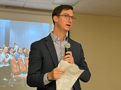 Dr. Daniel Cheely, executive director of the Collegium Institute for Catholic Thought and Culture, speaks at St. Mary Magdalen Church in Media on Oct. 11 during “Catholic Life, Secular Universities? An Evening Reception,” which explored how students live out their faith on secular campuses. (Photo: Jay Sorgi)