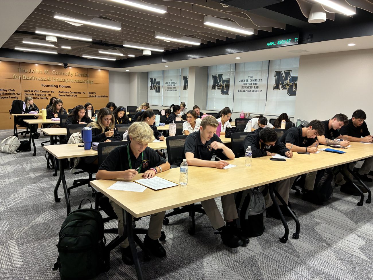A link from the Lions Club was shared with students who joined up to write, and they met on a late September day inside the school’s new John M. Connolly Center for Business and Entrepreneurship.