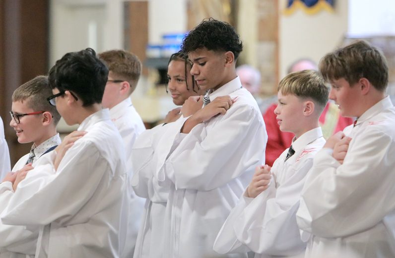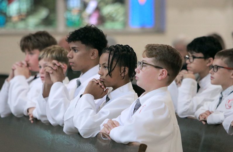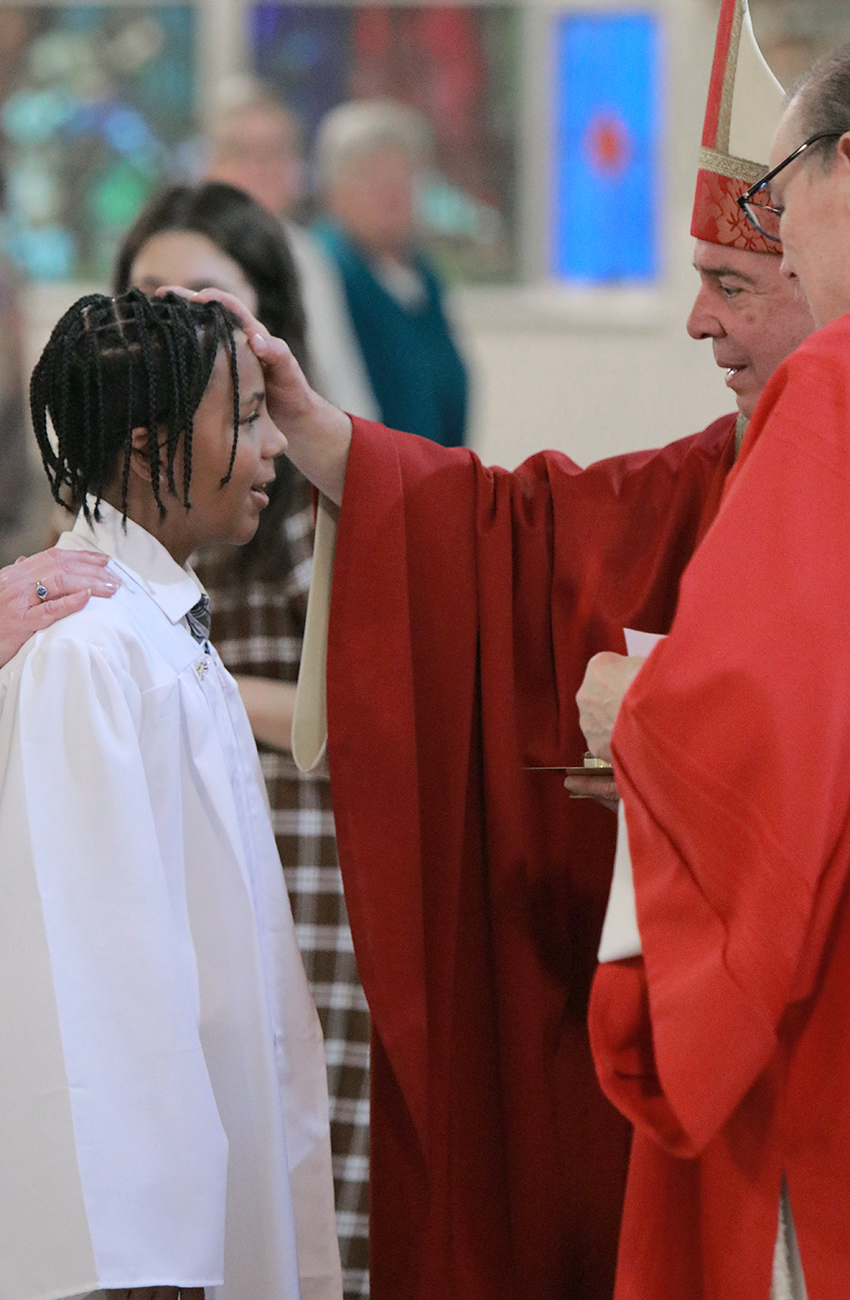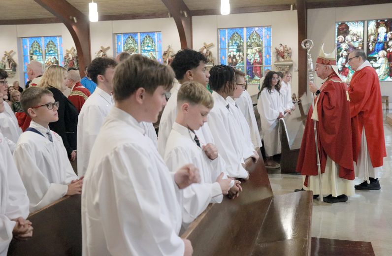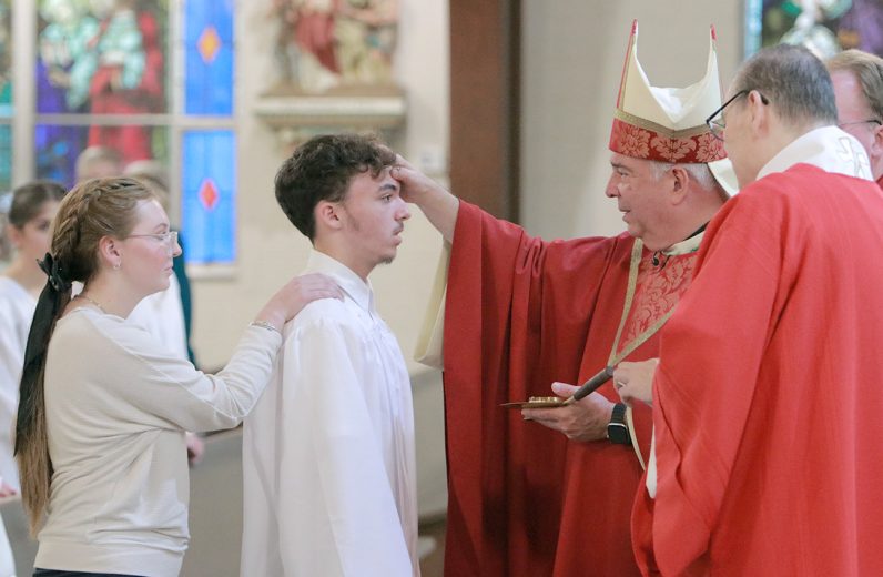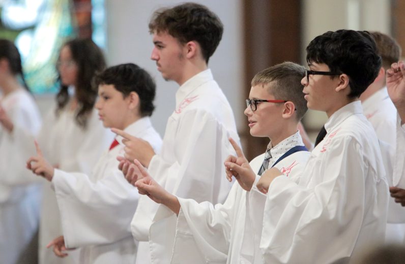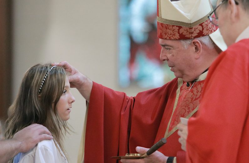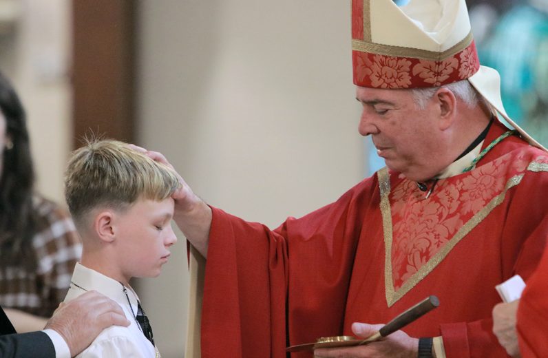 Approximately 20 young Catholics received the sacrament of confirmation conferred by Archbishop Nelson Pérez as he celebrated Mass Oct. 11 at the Northeast Philly parish joined by pastor Father Jonathan J. Dalin. St. Martha Church is located at 11301 Academy Rd in Philadelphia– learn more at stmarthachurch.com. (Photos by Sarah Webb)