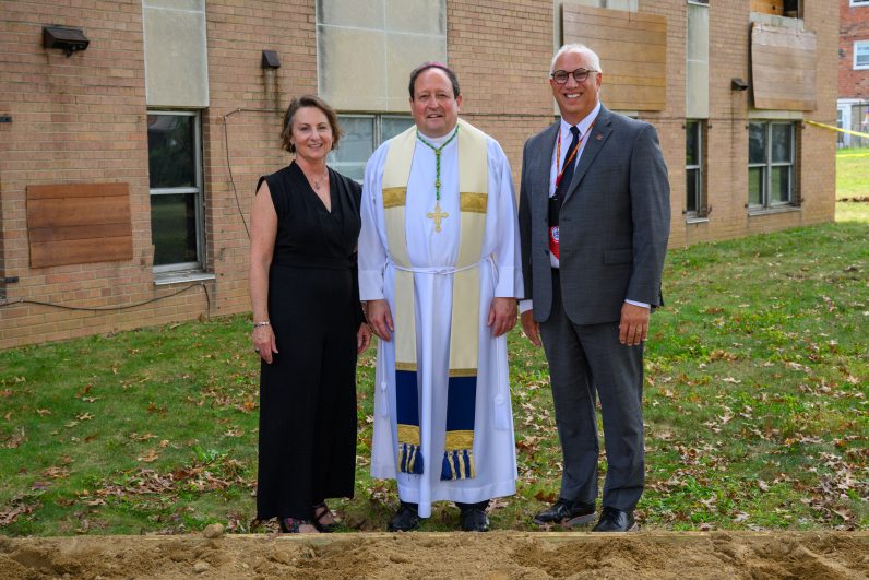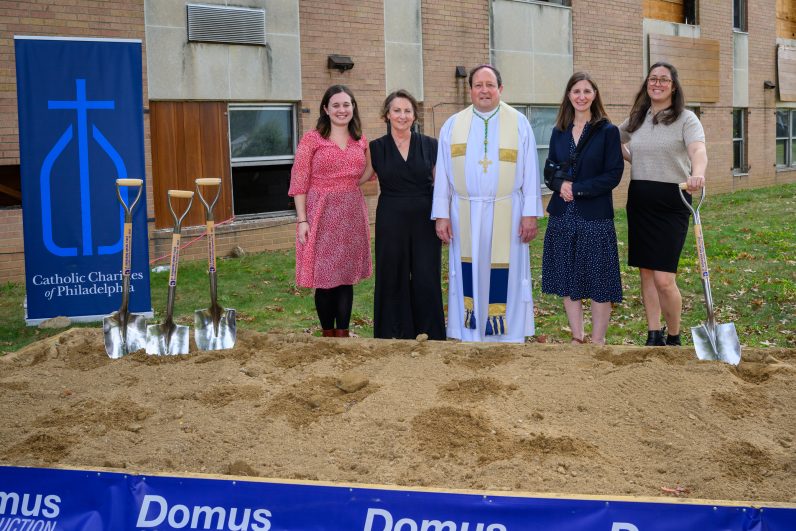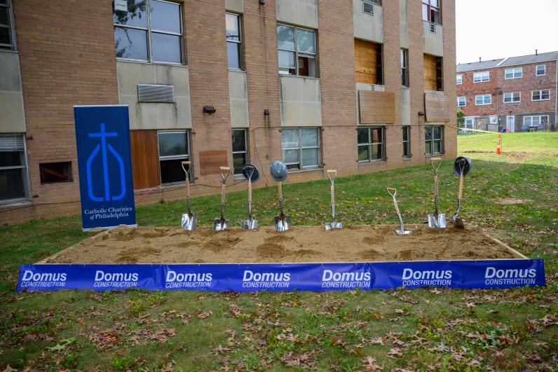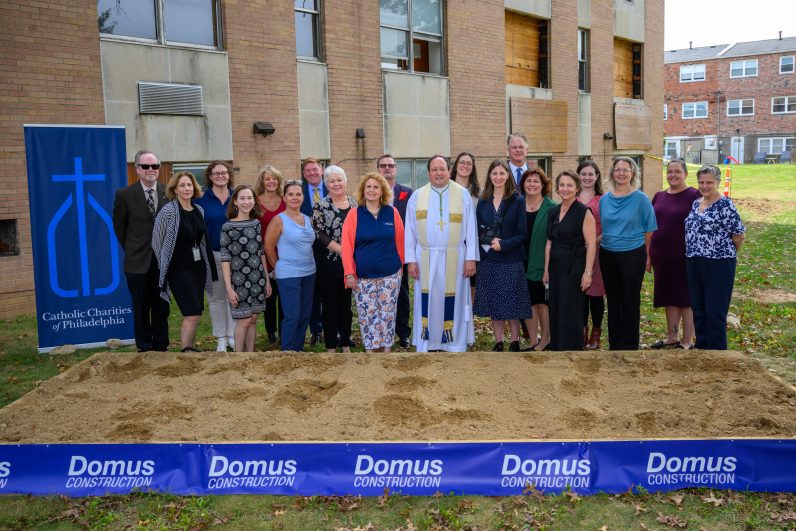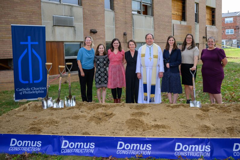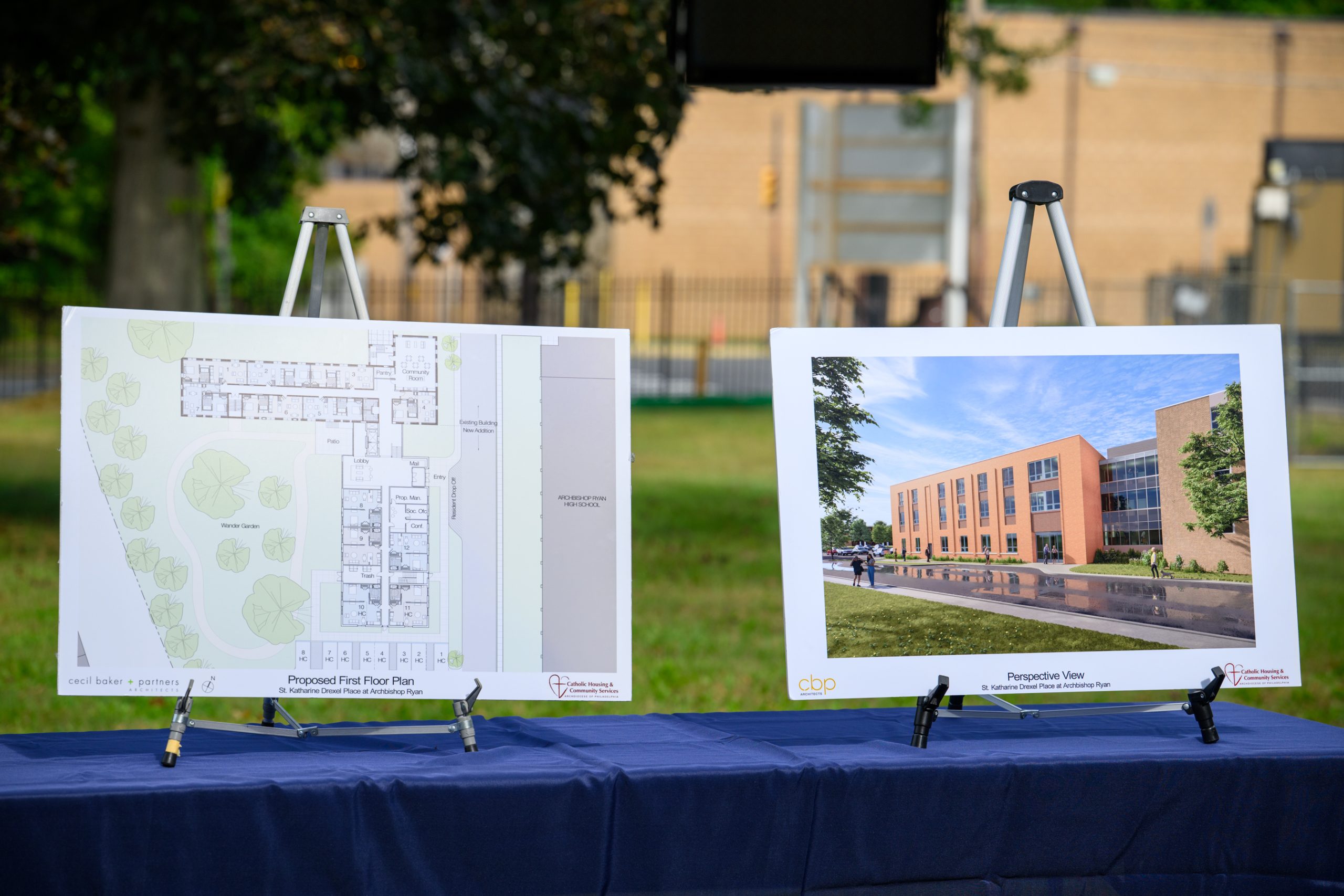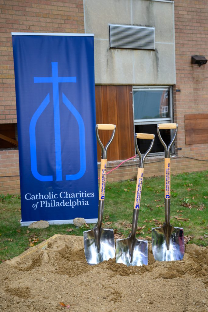 Catholic Housing and Community Services, a ministry of Catholic Charities of Philadelphia, held a groundbreaking blessing Sept. 29 for St. Katharine Drexel Place. Bishop John J. McIntyre blessed the grounds of the 48-unit facility which will provide affordable housing for independent seniors in Northeast Philadelphia. St. Katharine Drexel Place is adjacent to Archbishop Ryan High School and involves the substantial rehabilitation of the former three-story school friary building as well as the construction of a new three-story addition. (Photos by Bradley Digital)