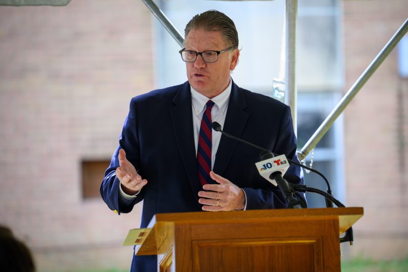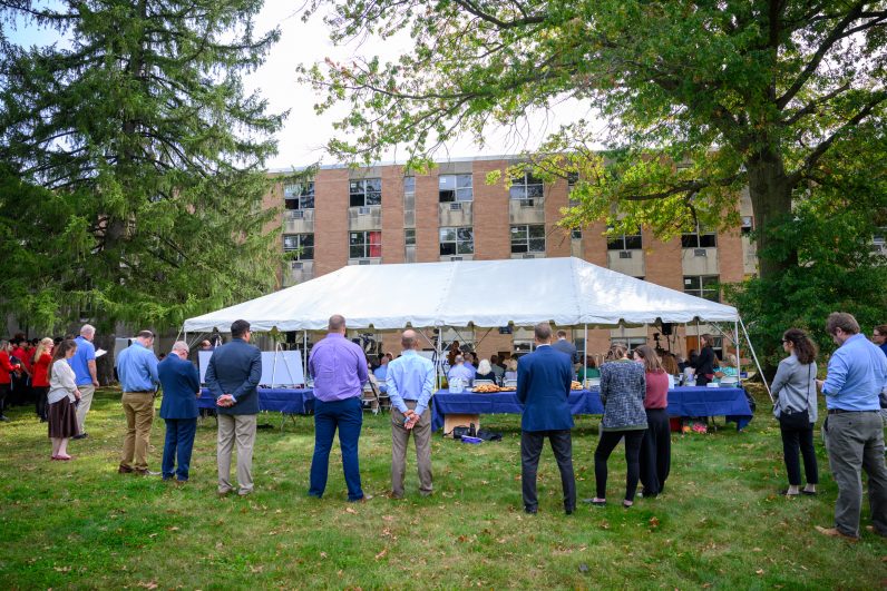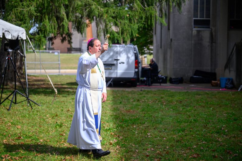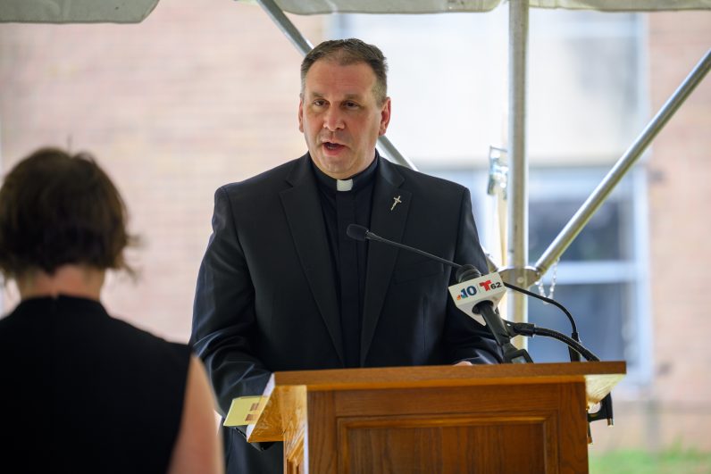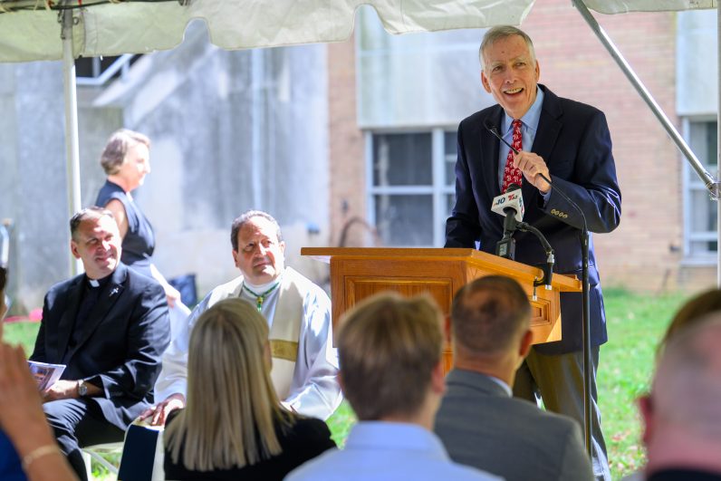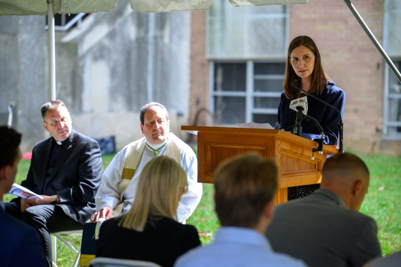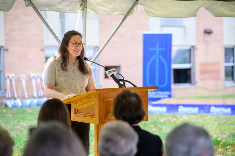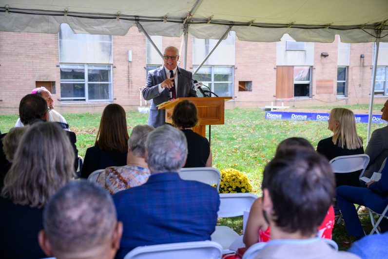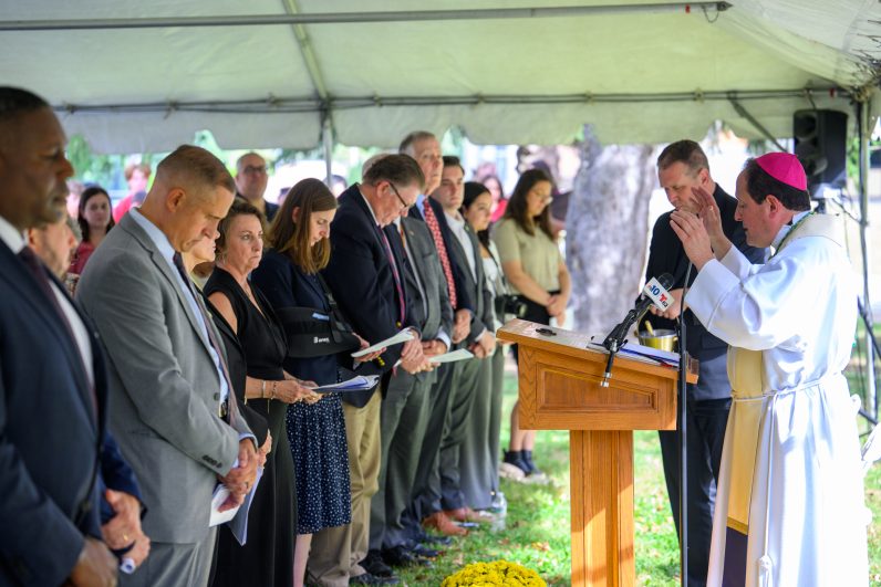 Catholic Housing and Community Services, a ministry of Catholic Charities of Philadelphia, held a groundbreaking blessing Sept. 29 for St. Katharine Drexel Place. Bishop John J. McIntyre blessed the grounds of the 48-unit facility which will provide affordable housing for independent seniors in Northeast Philadelphia. St. Katharine Drexel Place is adjacent to Archbishop Ryan High School and involves the substantial rehabilitation of the former three-story school friary building as well as the construction of a new three-story addition. (Photos by Bradley Digital)