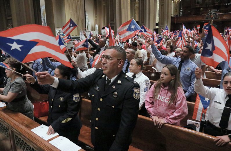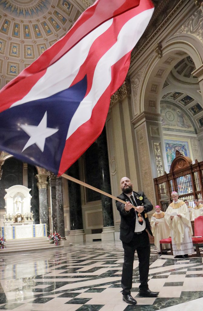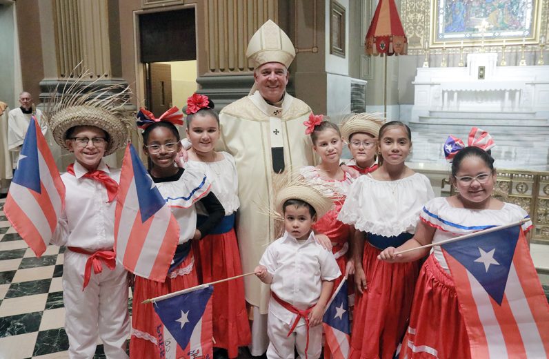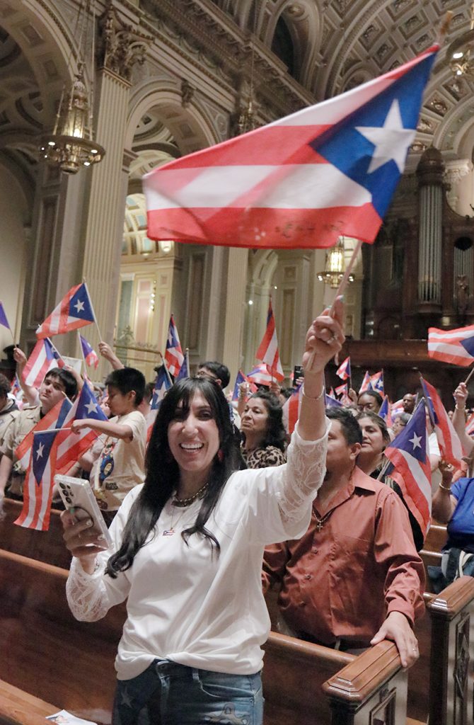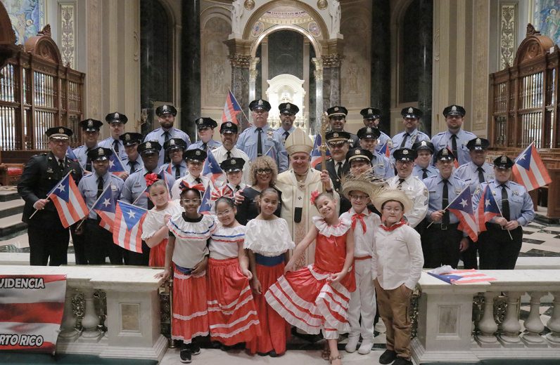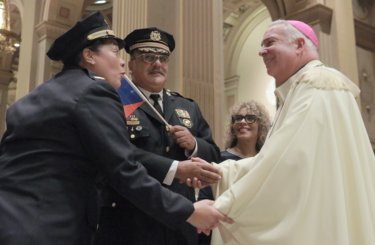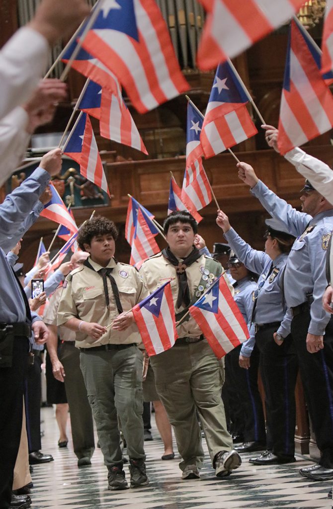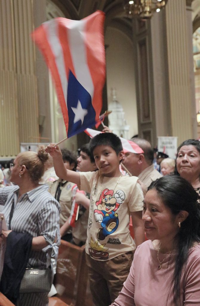 Hundreds of Catholics came together on Sept. 25 at the Cathedral Basilica of Saints Peter and Paul to honor their Puerto Rican heritage during a vibrant Mass celebrated by Archbishop Nelson J. Pérez. The gathering included Philadelphia police officers, clergy from Hispanic ministry, and families who proudly showcased their culture with Puerto Rican flags and colors. (Photos by Sarah Webb)
