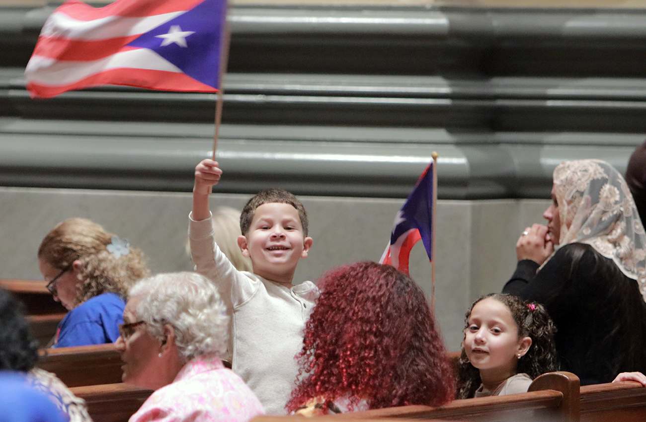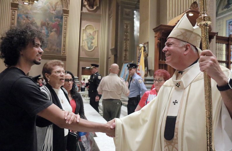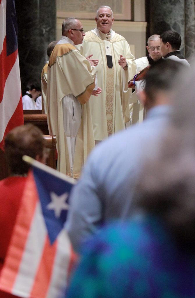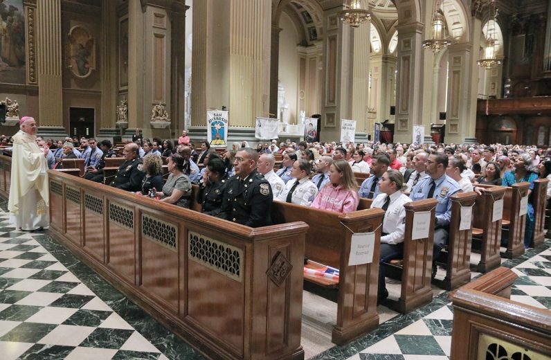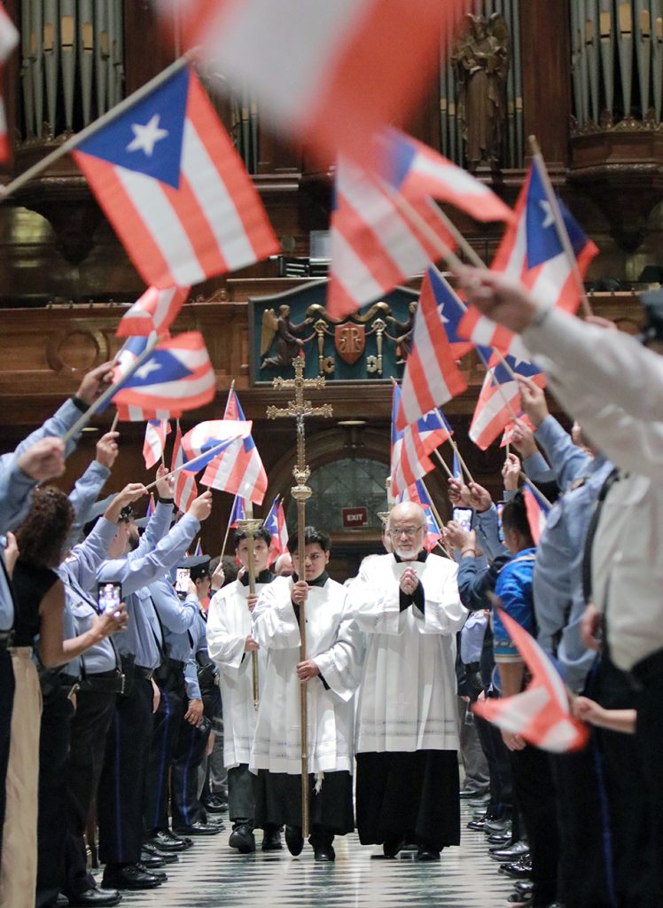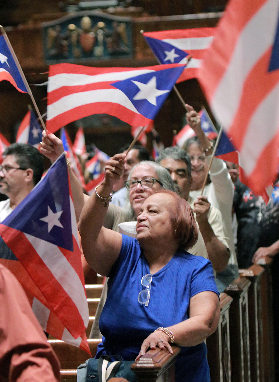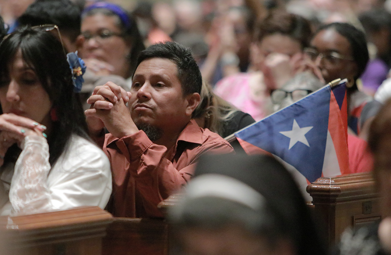 Hundreds of Catholics came together on Sept. 25 at the Cathedral Basilica of Saints Peter and Paul to honor their Puerto Rican heritage during a vibrant Mass celebrated by Archbishop Nelson J. Pérez. The gathering included Philadelphia police officers, clergy from Hispanic ministry, and families who proudly showcased their culture with Puerto Rican flags and colors. (Photos by Sarah Webb)