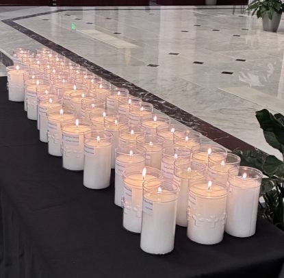Memorial candles glow during the annual Mass for Parents of Deceased Children at St. Teresa of Calcutta Parish in Limerick on Nov. 19, each flame honoring a child remembered in prayer. (Photo: St. Teresa of Calcutta Parish)