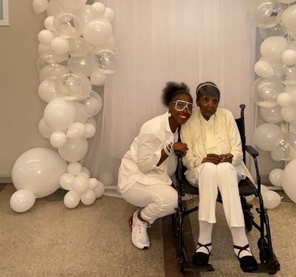 Martha Copes (right), 98, at St. Edmond’s Senior Community Center with Manager Kimberly Beatty. (Photo: St. Edmond’s Senior Community Center)