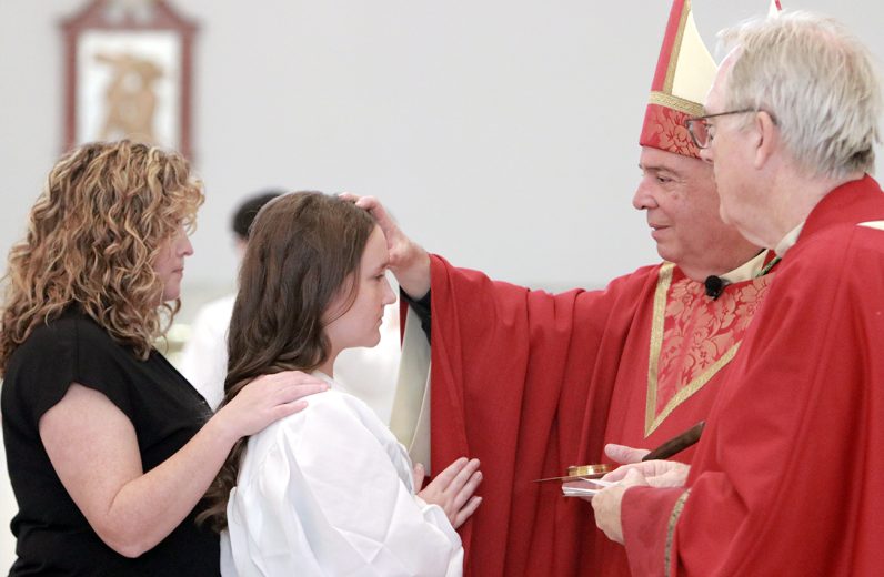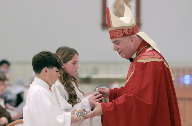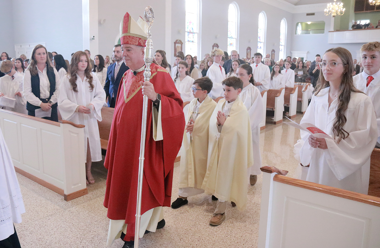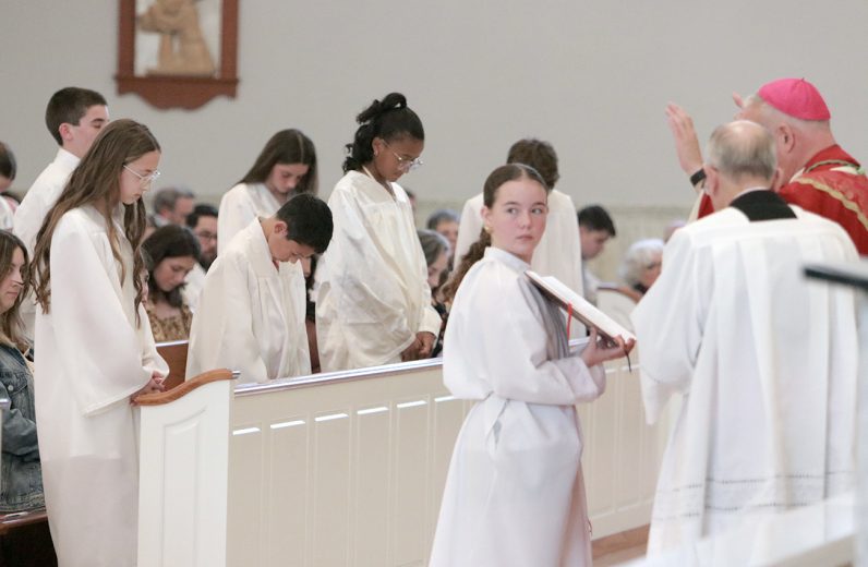 Approximately 70 young Catholics received the sacrament of confirmation conferred by Archbishop Nelson Pérez as he celebrated Mass Nov. 5 at the Delaware County parish joined by pastor Rev. Michael D. Murphy. St. Dorothy Church is located at 4910 Township Line Road in Drexel Hill – learn more at www.stdotsdrexelhill.org.  (Photos by Sarah Webb)