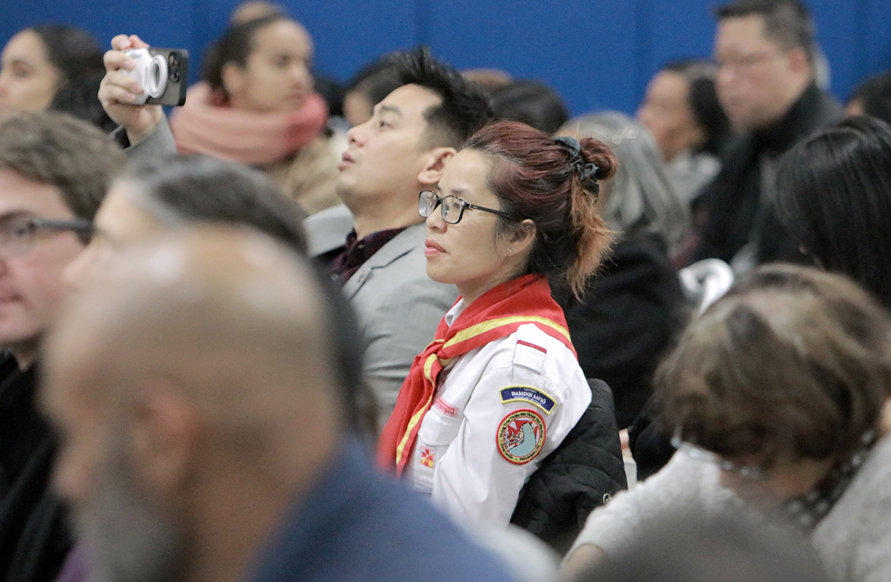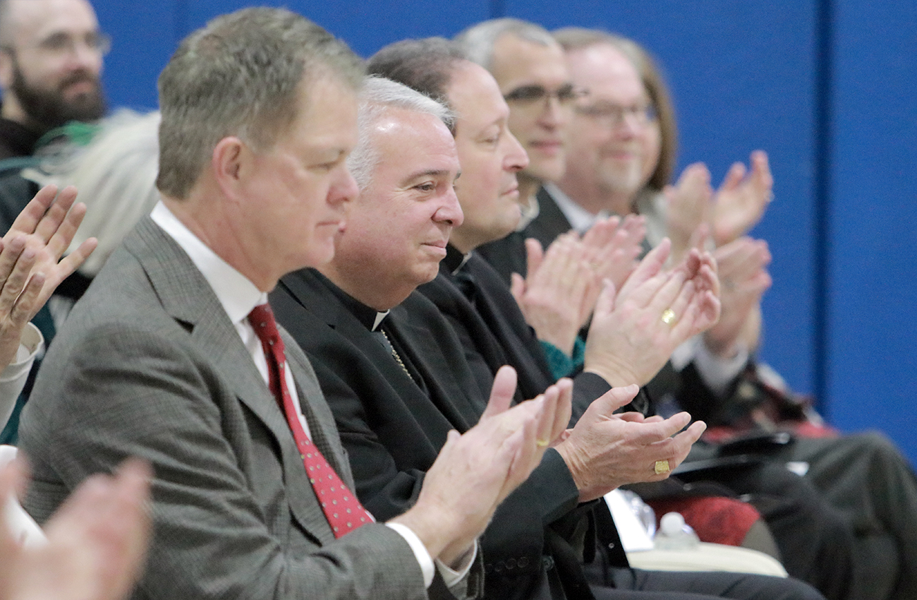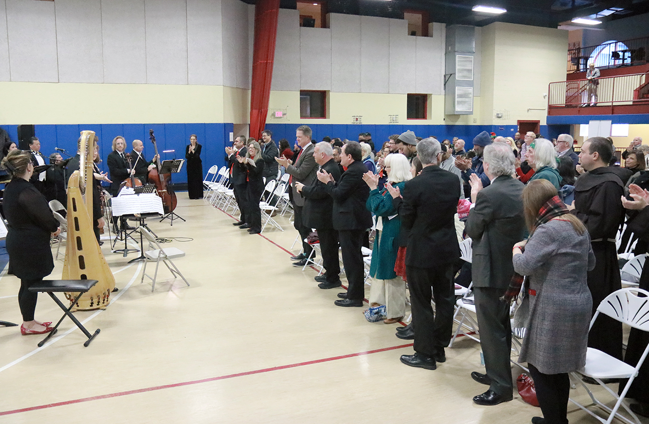 Archbishop Nelson J. Pérez joined Auxiliary Bishops John J. McIntyre and Christopher R. Cooke at Catholic Charities of Philadelphia’s Community Center at Visitation in Kensington on Dec. 6 for a Christmas concert featuring the symphonic ensemble Gaudemas. The festive gathering brought together families, supporters, and community members at the center, which has served children and youth since 2003 and continues its mission of providing food access, tutoring, professional development, and recreation. (Photos: Sarah Webb)