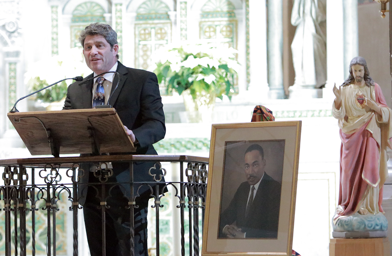 Rabbi Shai Cherry of Congregation Adath Jeshurun speaks during the Dr. Martin Luther King Jr. Interfaith Prayer Service at St. Malachy Catholic Church.