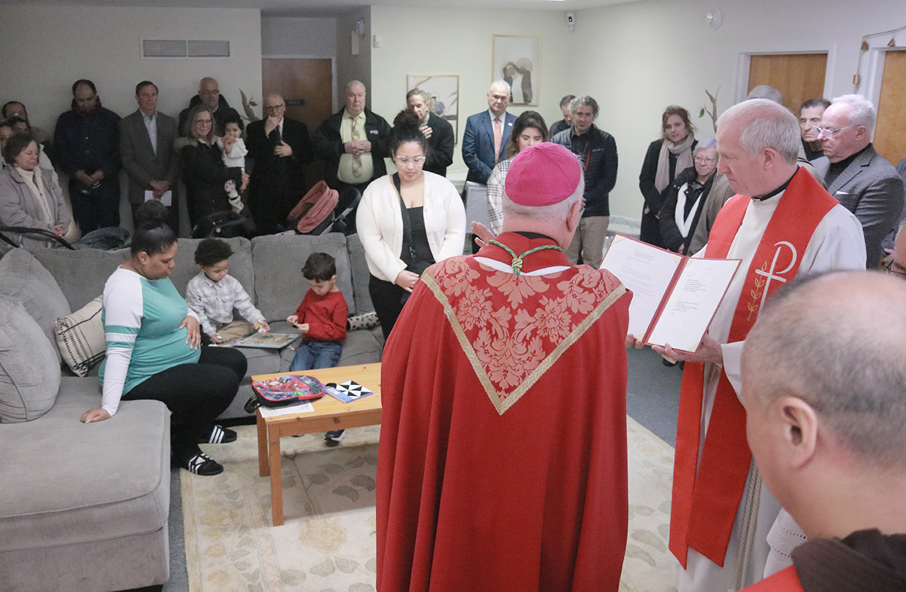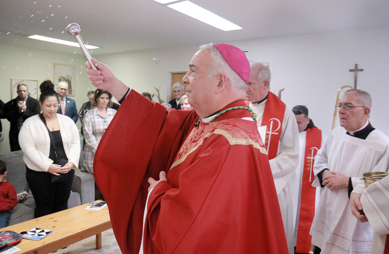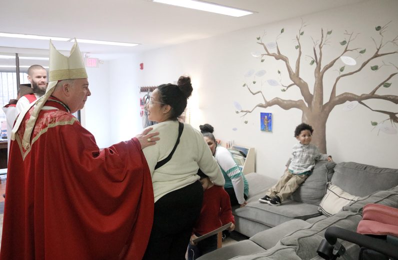 Archbishop Nelson J. Pérez offers a blessing over Annie’s Home during his Jan. 21 pastoral visit.
