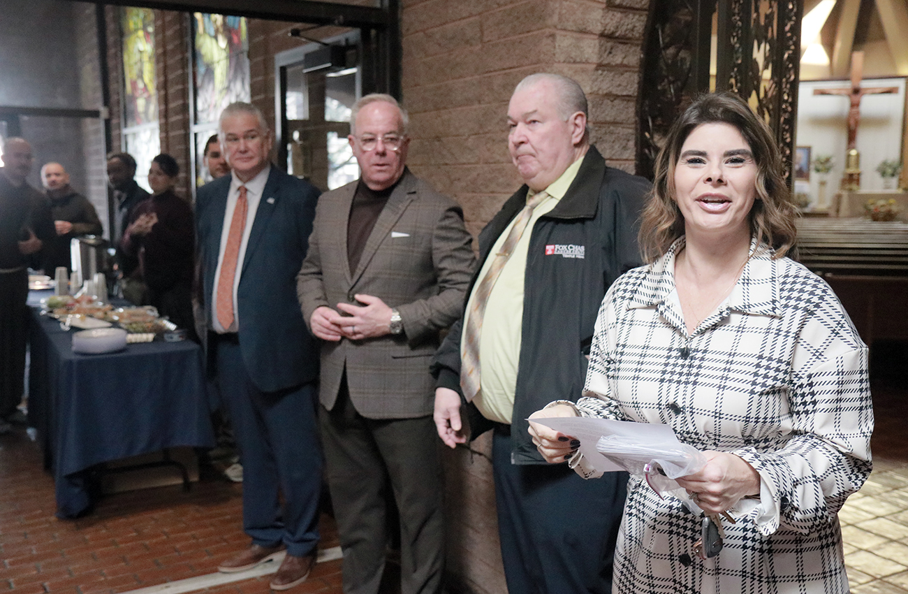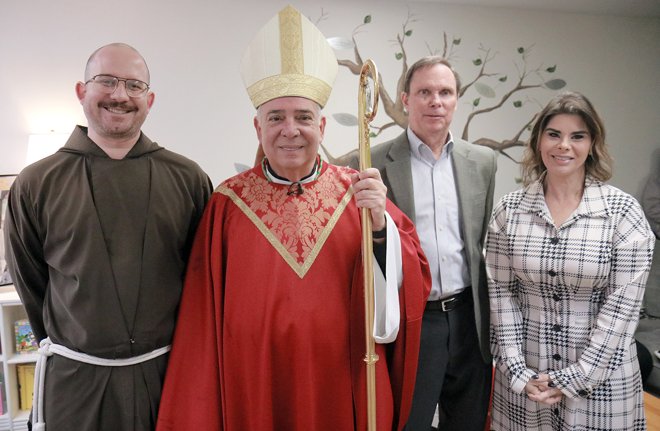 Archbishop Nelson J. Pérez stands with Brother Alexander Hostoffer, OFM Cap., chair of the board; Rob Chevalier, treasurer of the board; and Kim Capista, executive director of Annie’s Home, during the Jan. 21 visit.