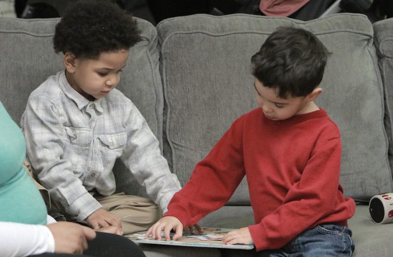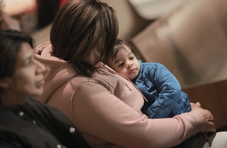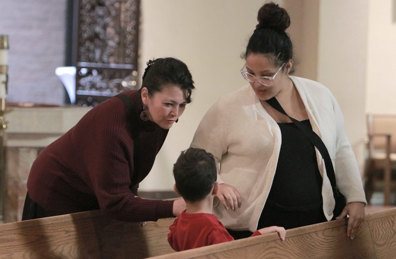 Archbishop Nelson J. Pérez sits with women and their children served by Annie’s Home during his Jan. 21 pastoral visit.