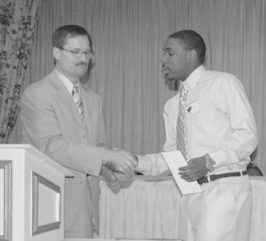 Francis Swiacki presents an award to a graduate of St. Francis Homes for Boys.