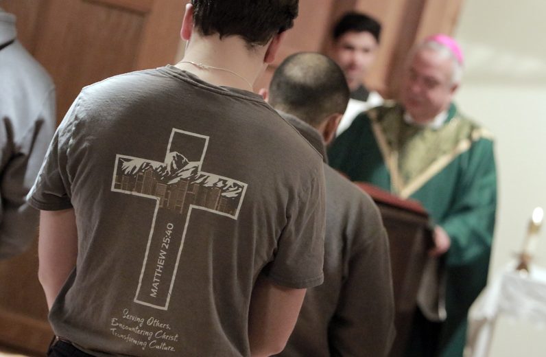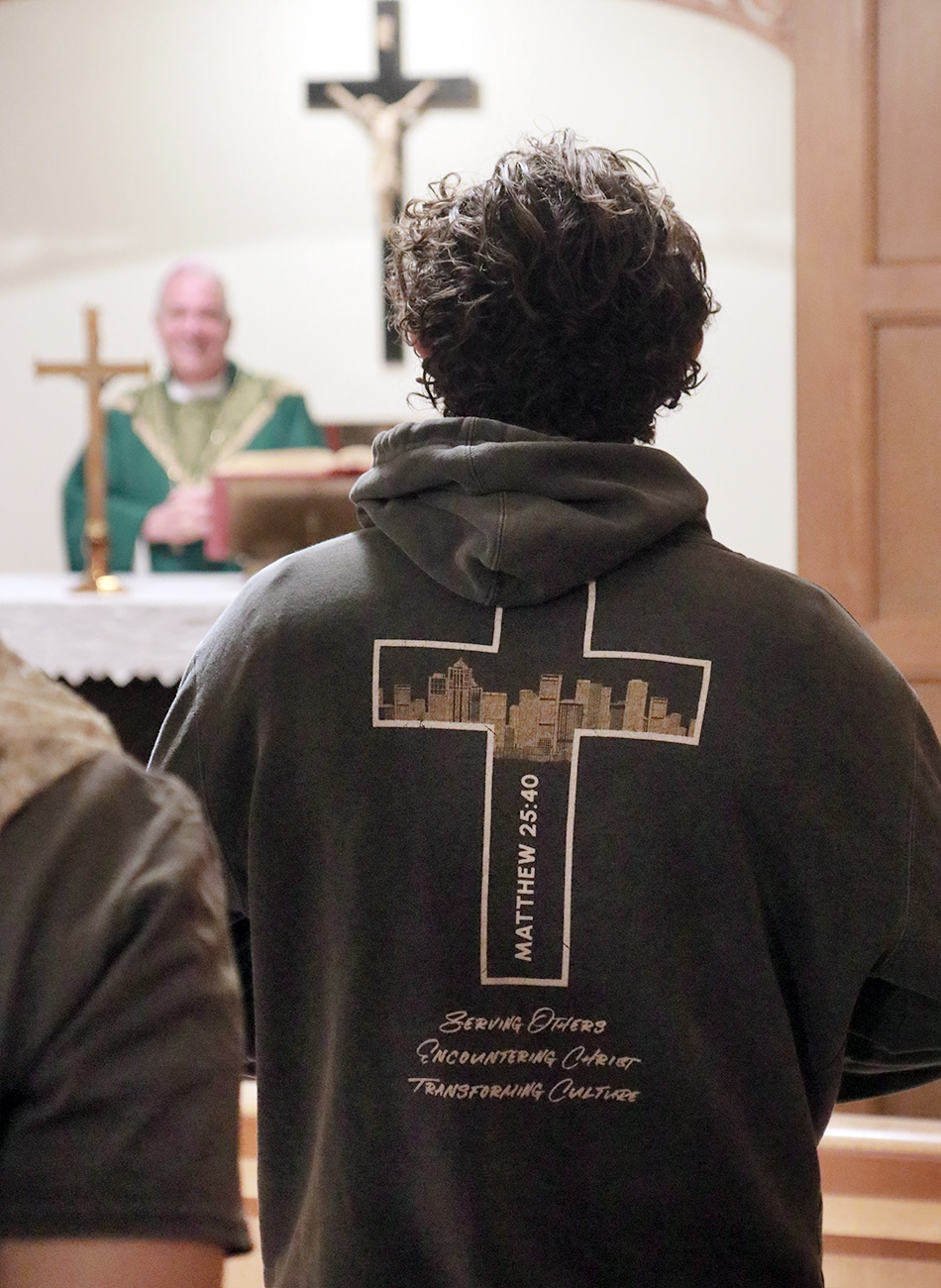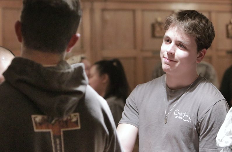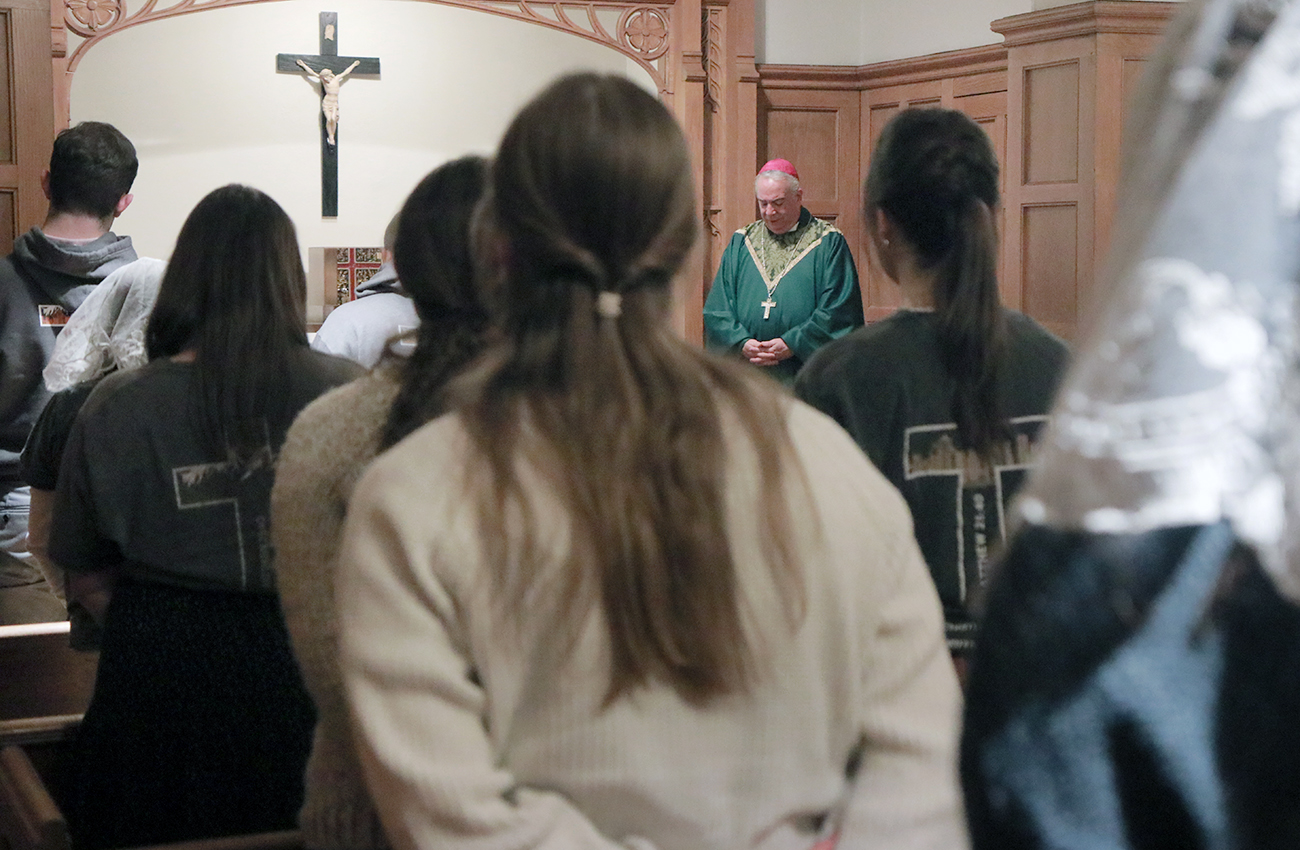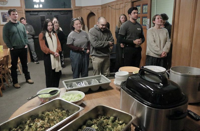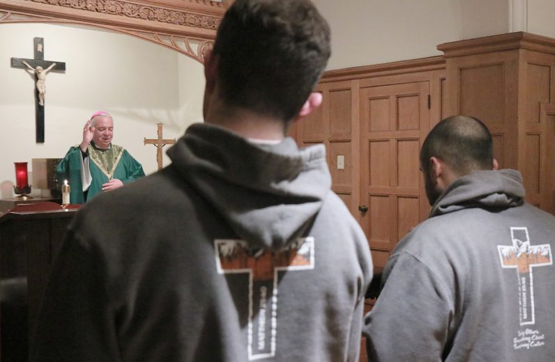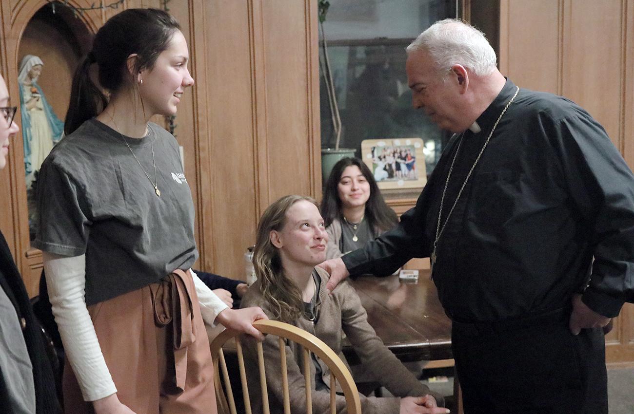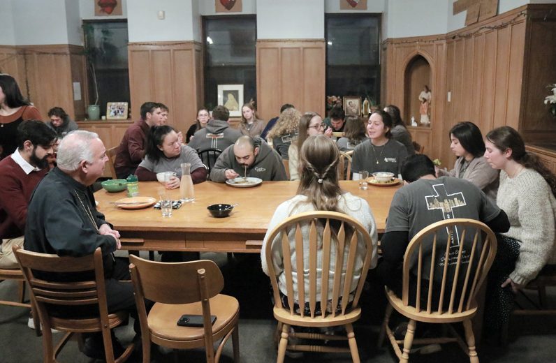 Archbishop Pérez joined the Christ in the City staff and missionaries on Feb. 9 for Mass and a community dinner at St. John Cantius Parish in Northeast Philadelphia, where they reside during their missionary year of service. Christ in the City, a national initiative of young adults, seeks to encounter those experiencing homelessness and poverty by offering resources and walking alongside those in need. (Photos by Sarah Webb)