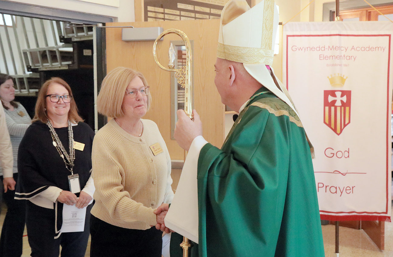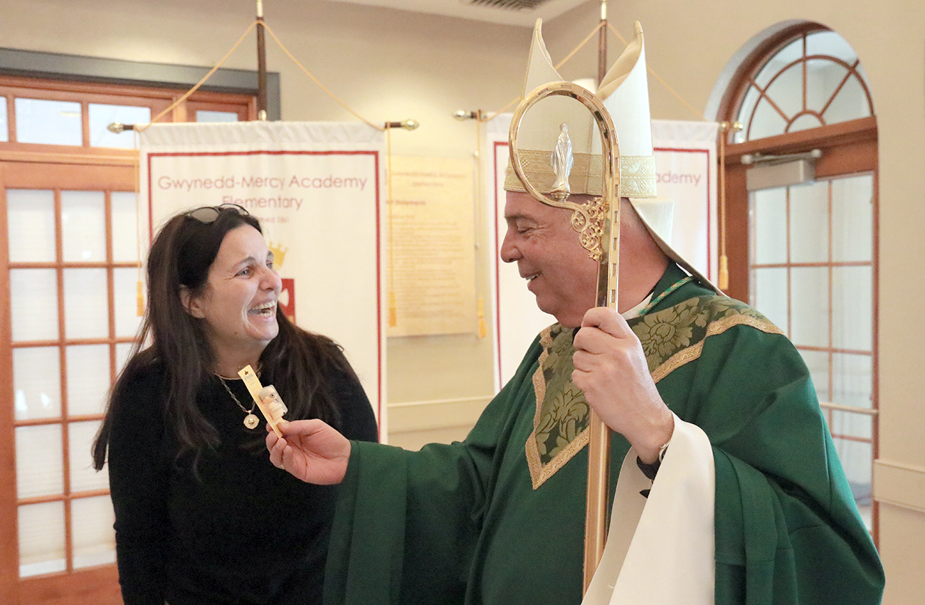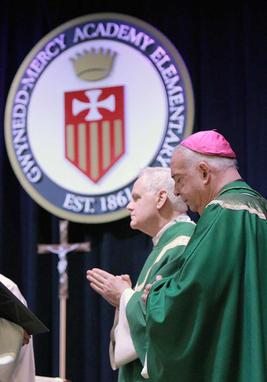 See scenes from Tuesday, Feb. 18, as Gwynedd‑Mercy Academy Elementary in Ambler welcomed Archbishop Nelson J. Pérez for a pastoral visit and schoolwide liturgy. Following Mass, the archbishop spent time visiting with the school community. Gwynedd‑Mercy Academy, sponsored by the Sisters of Mercy, is a private, Catholic, co‑educational school serving students from Pre‑K through grade eight. (Photos by Sarah Webb)