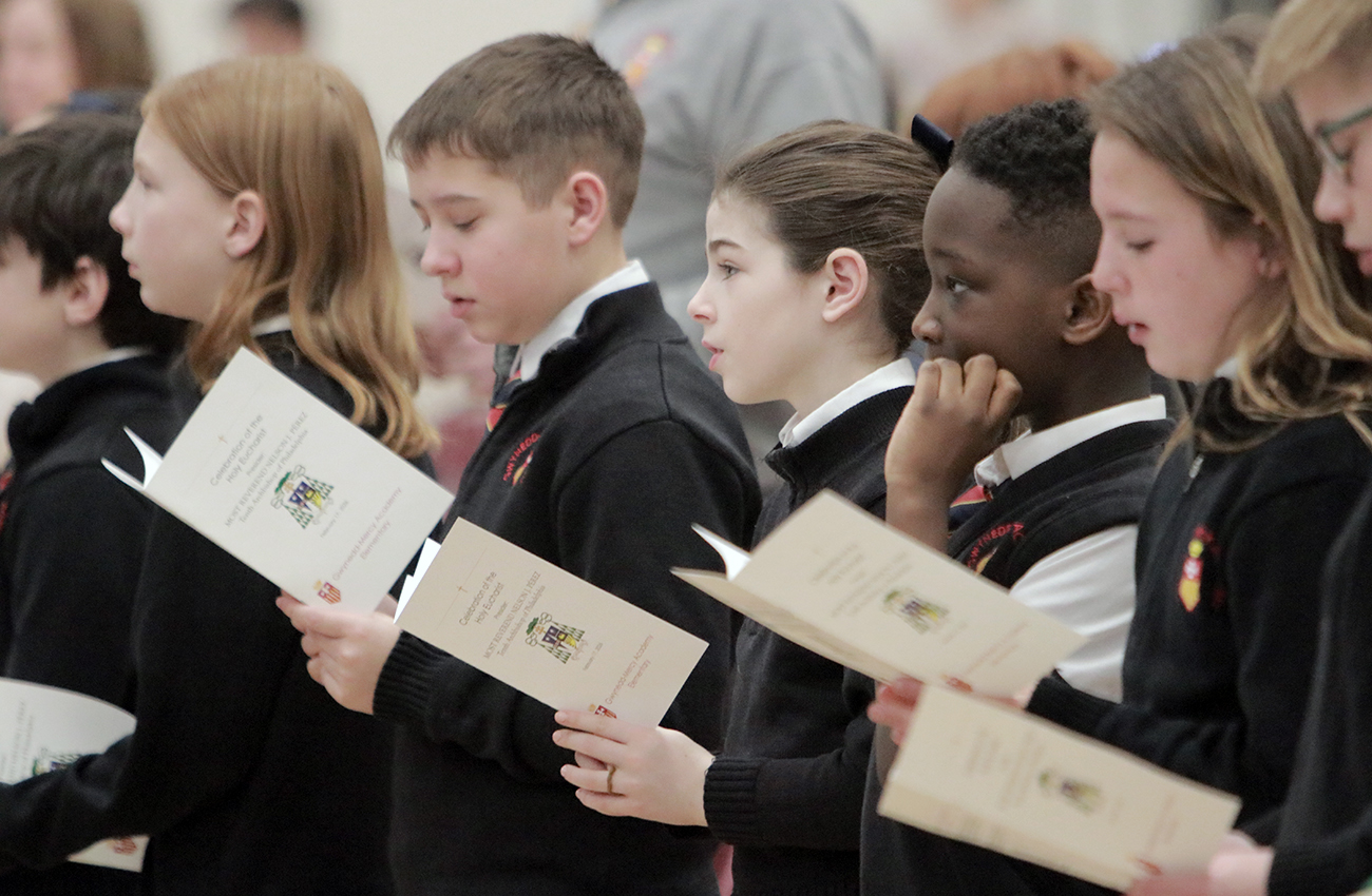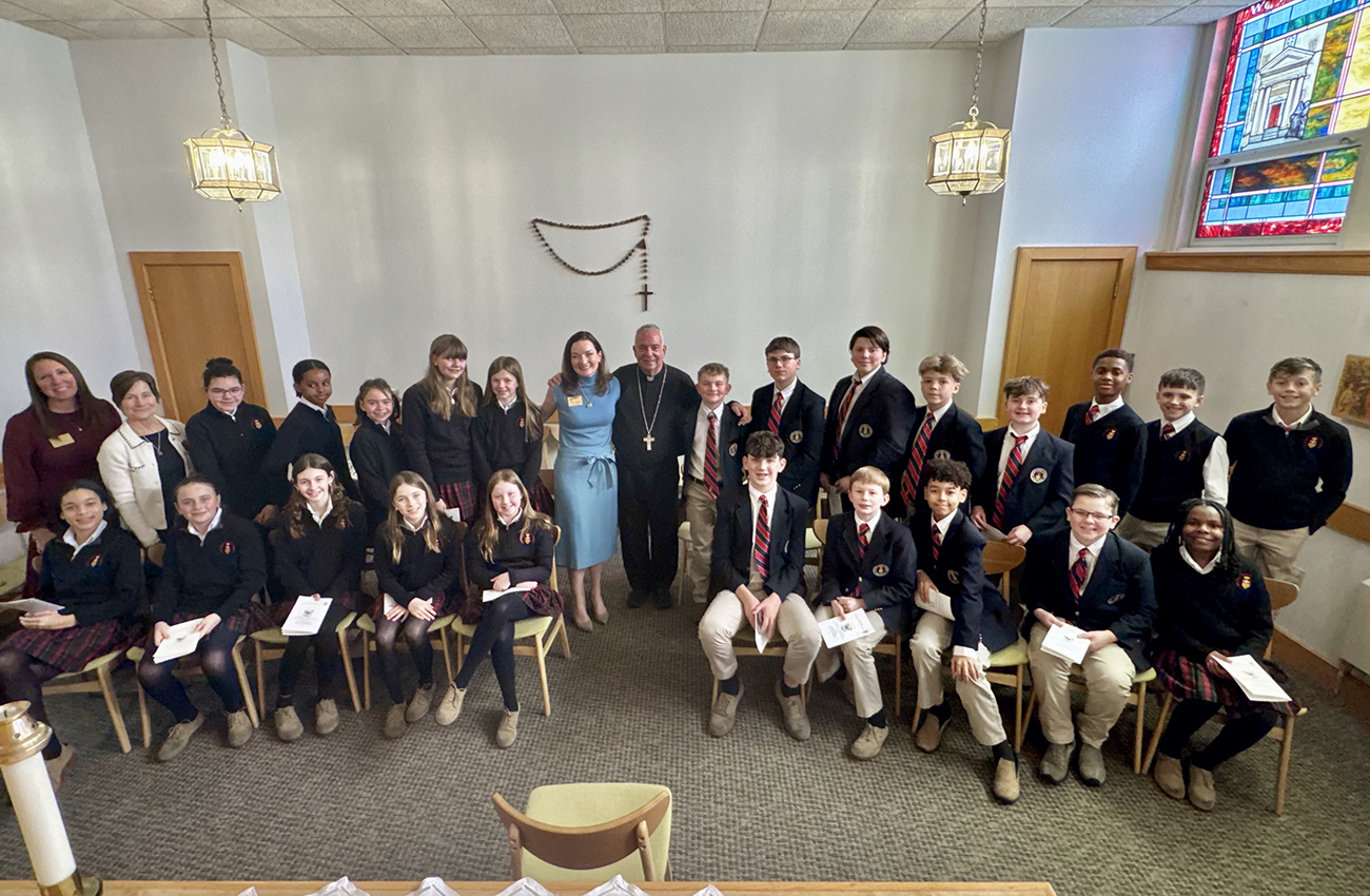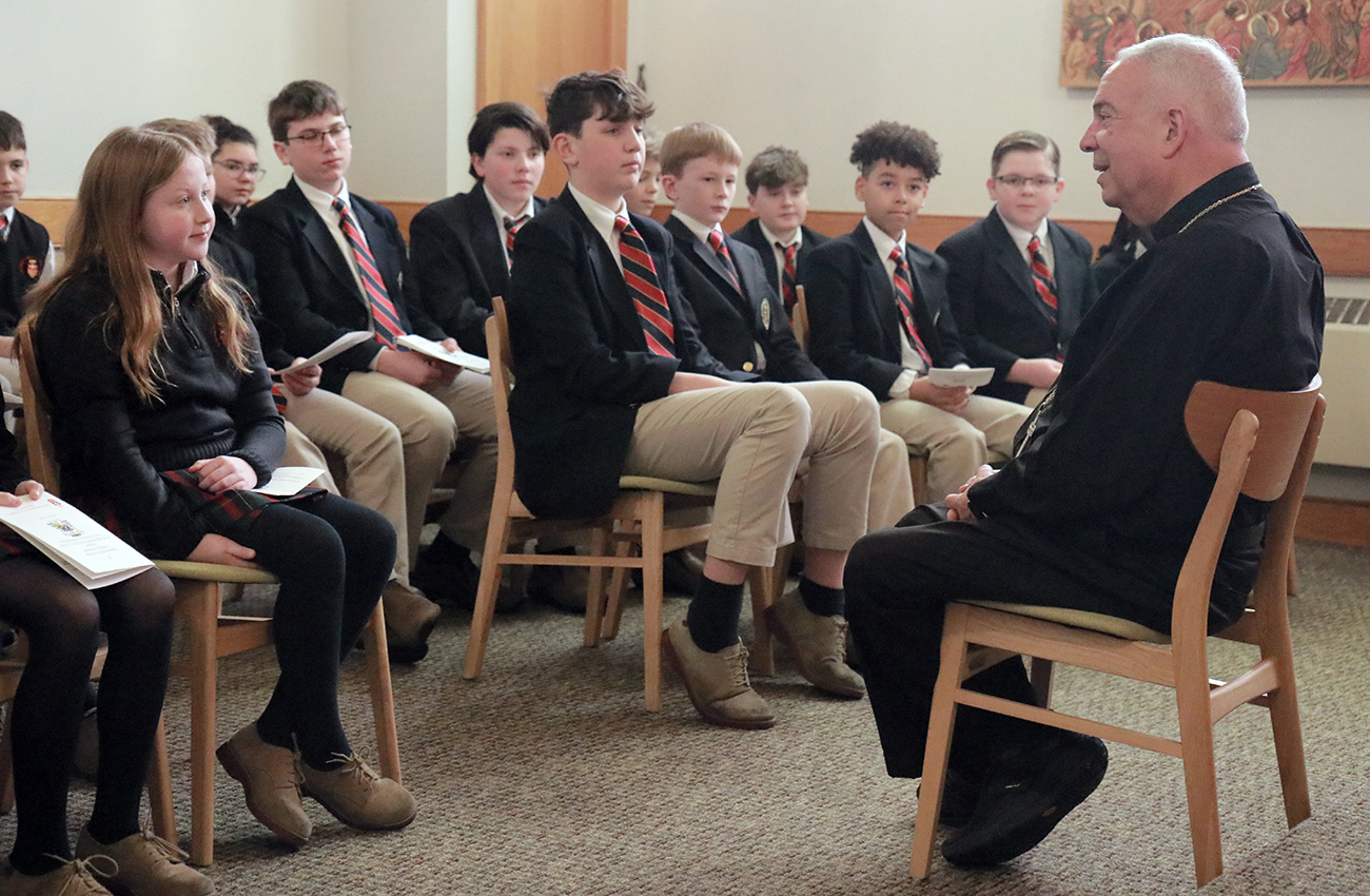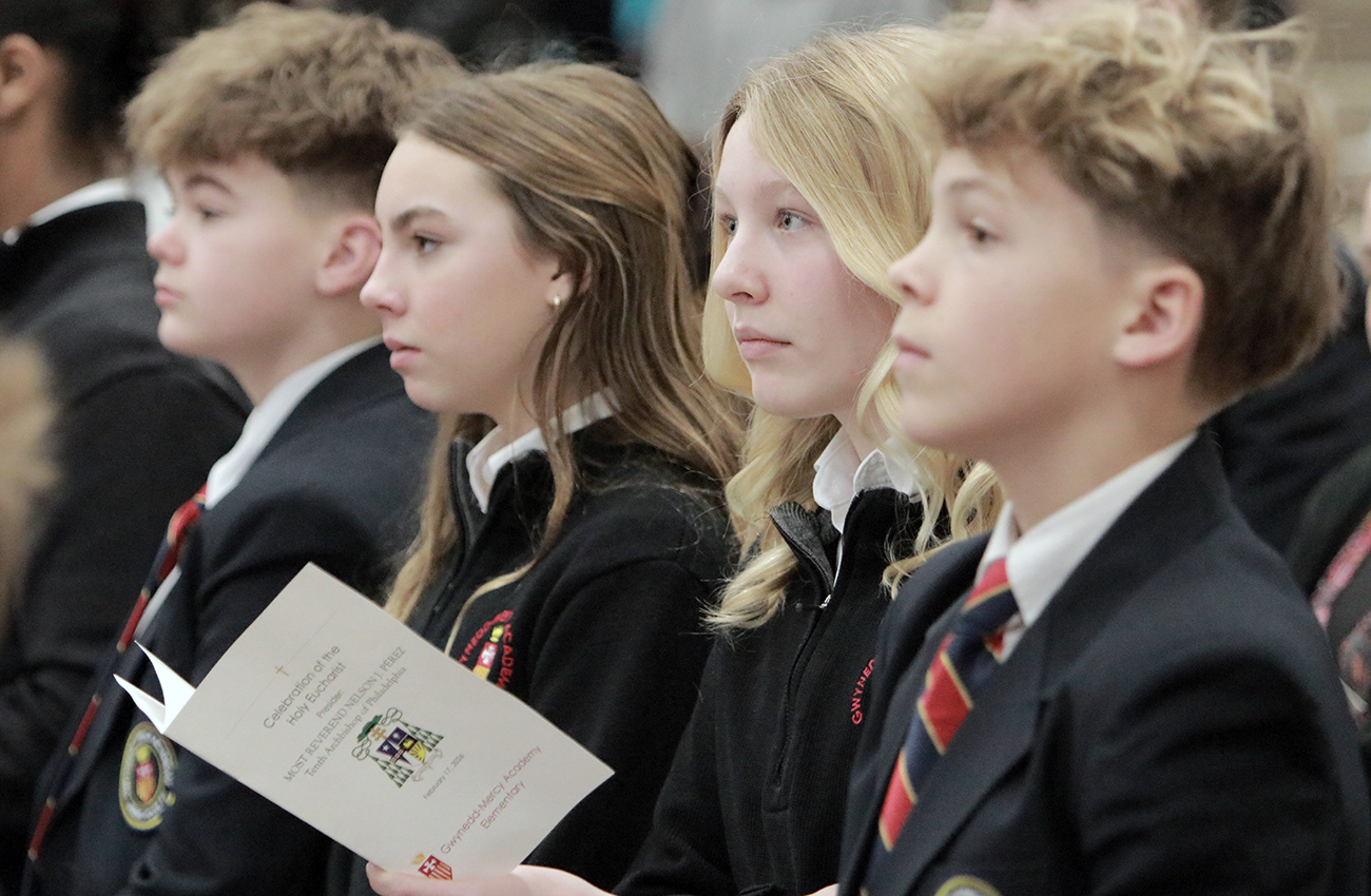 See scenes from Tuesday, Feb. 18, as Gwynedd‑Mercy Academy Elementary in Ambler welcomed Archbishop Nelson J. Pérez for a pastoral visit and schoolwide liturgy. Following Mass, the archbishop spent time visiting with the school community. Gwynedd‑Mercy Academy, sponsored by the Sisters of Mercy, is a private, Catholic, co‑educational school serving students from Pre‑K through grade eight. (Photos by Sarah Webb)