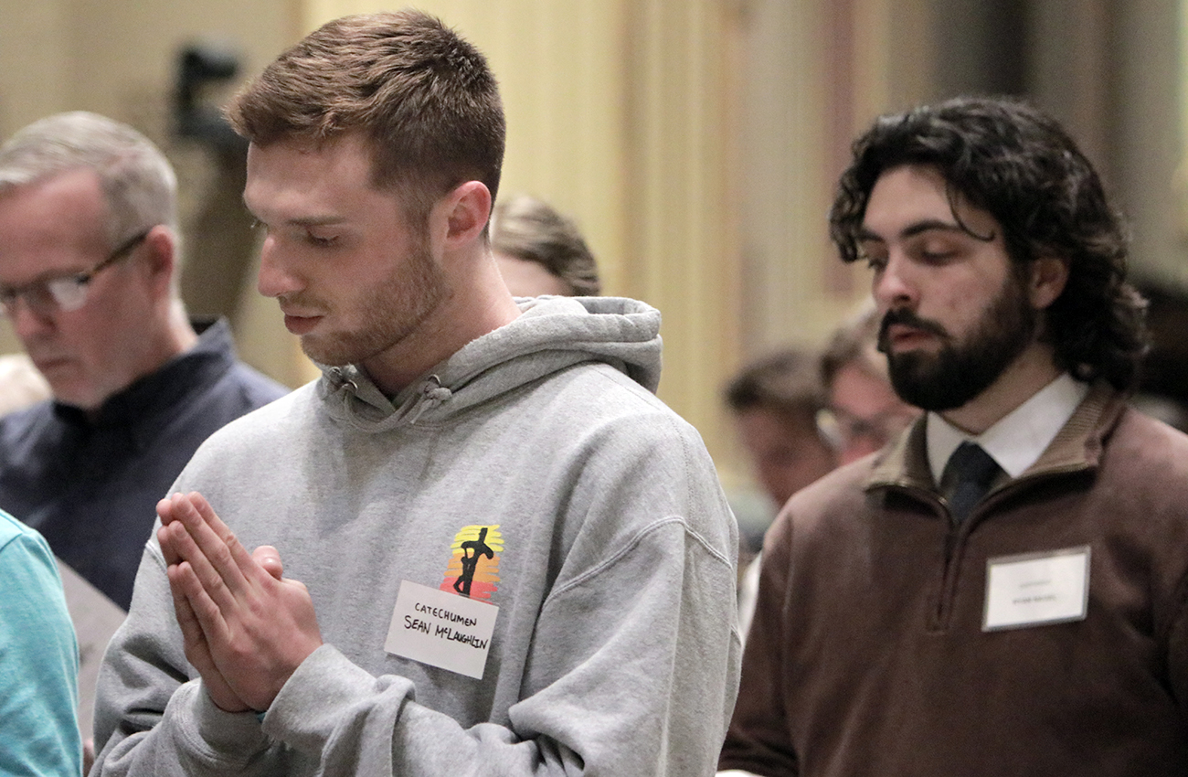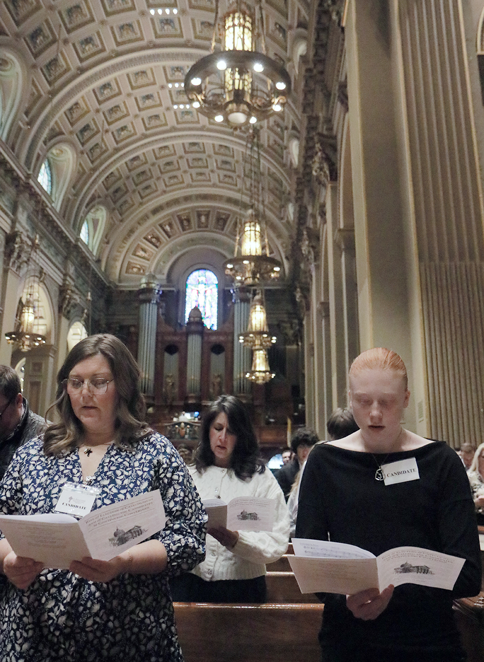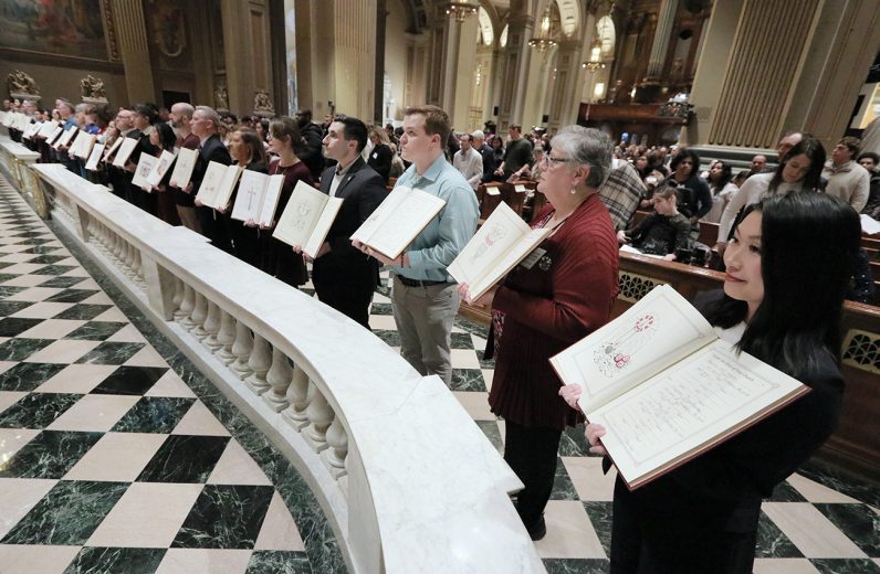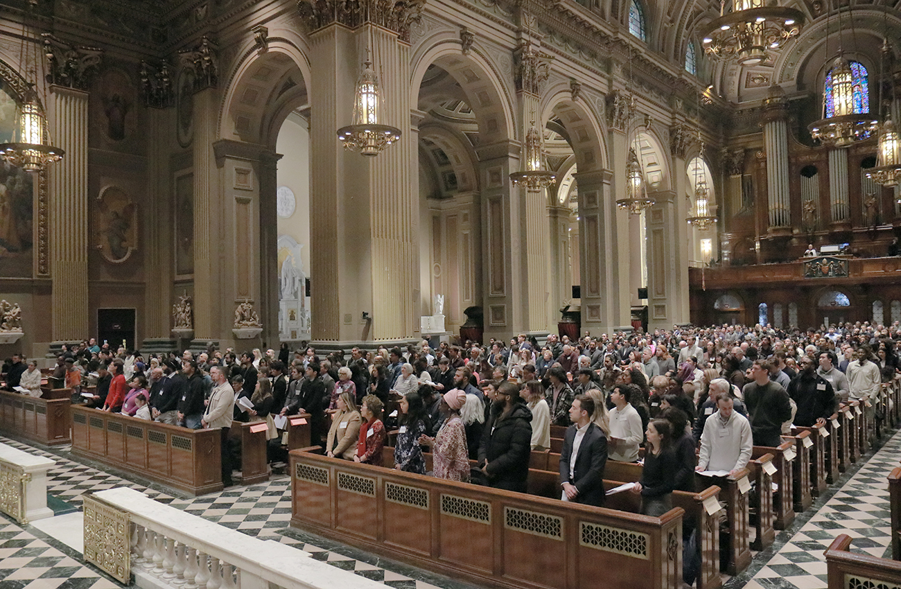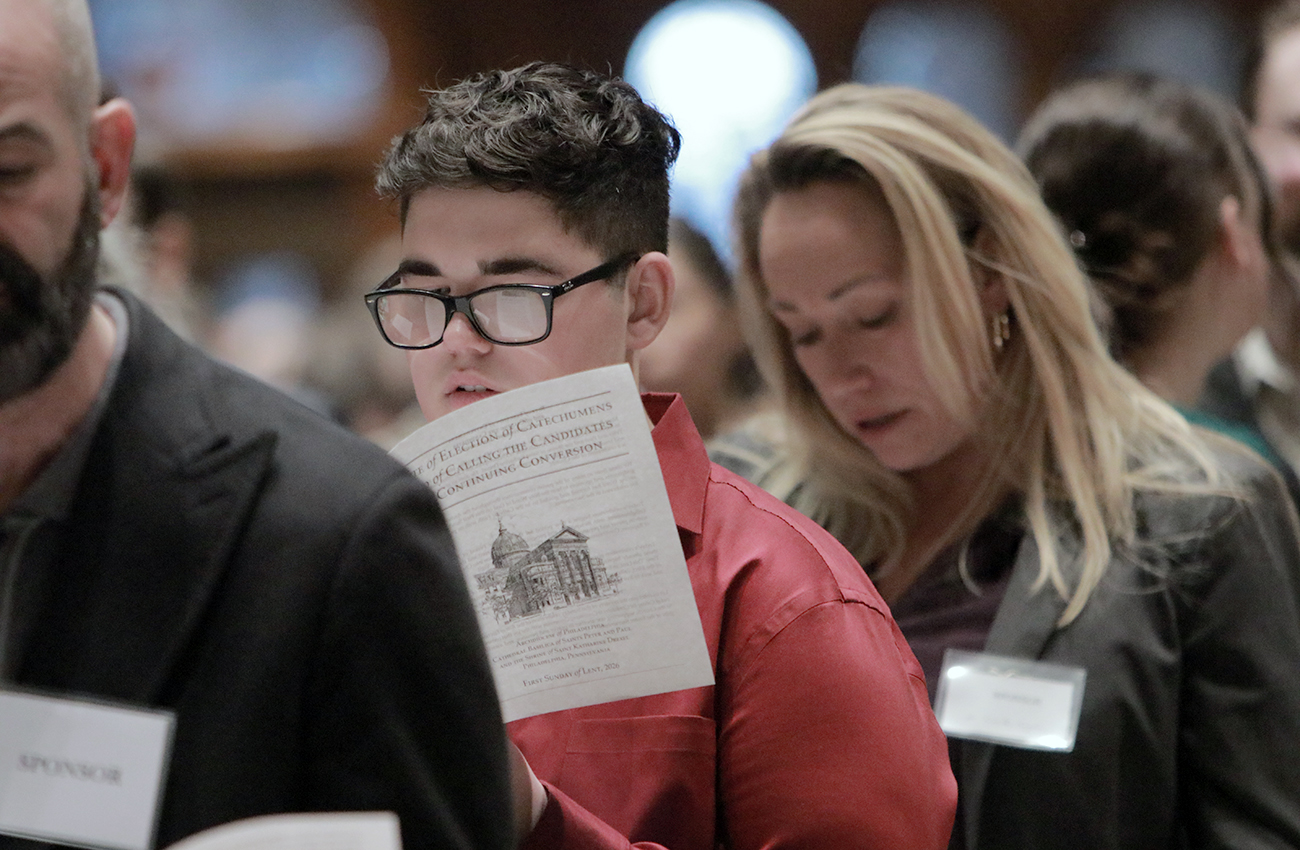 On the first Sunday of Lent, more than 1,150 people preparing to enter full communion with the Catholic Church this Easter received a welcome and blessing from Archbishop Pérez during Rite of Election liturgies Feb. 21-22 at the Cathedral Basilica of Saints Peter and Paul.