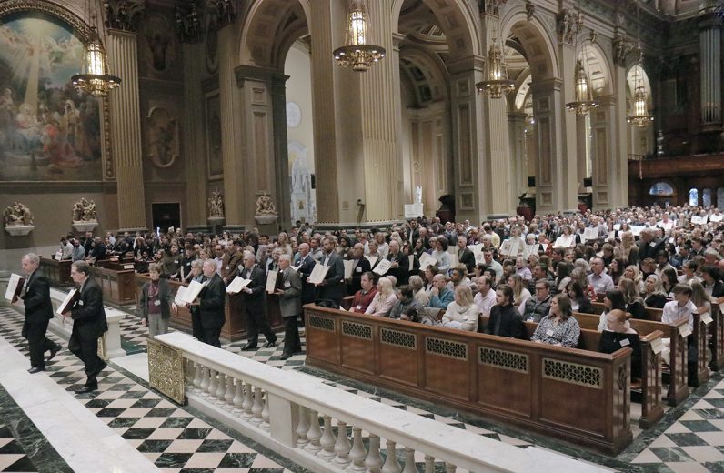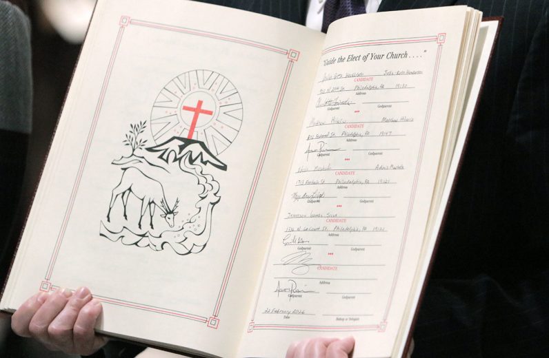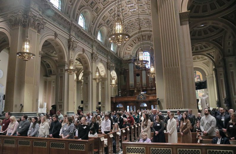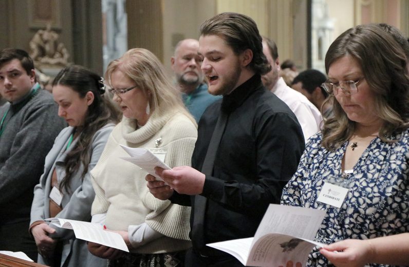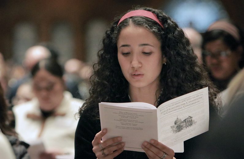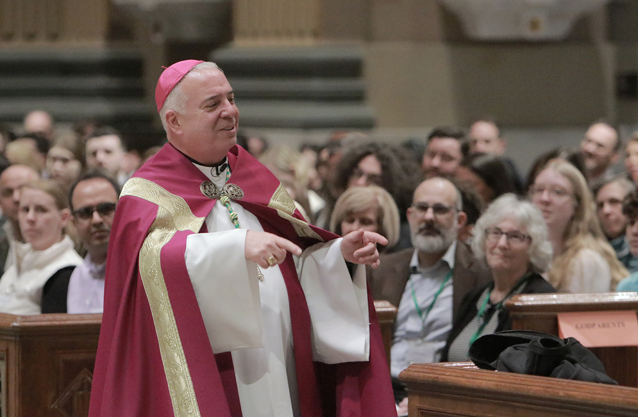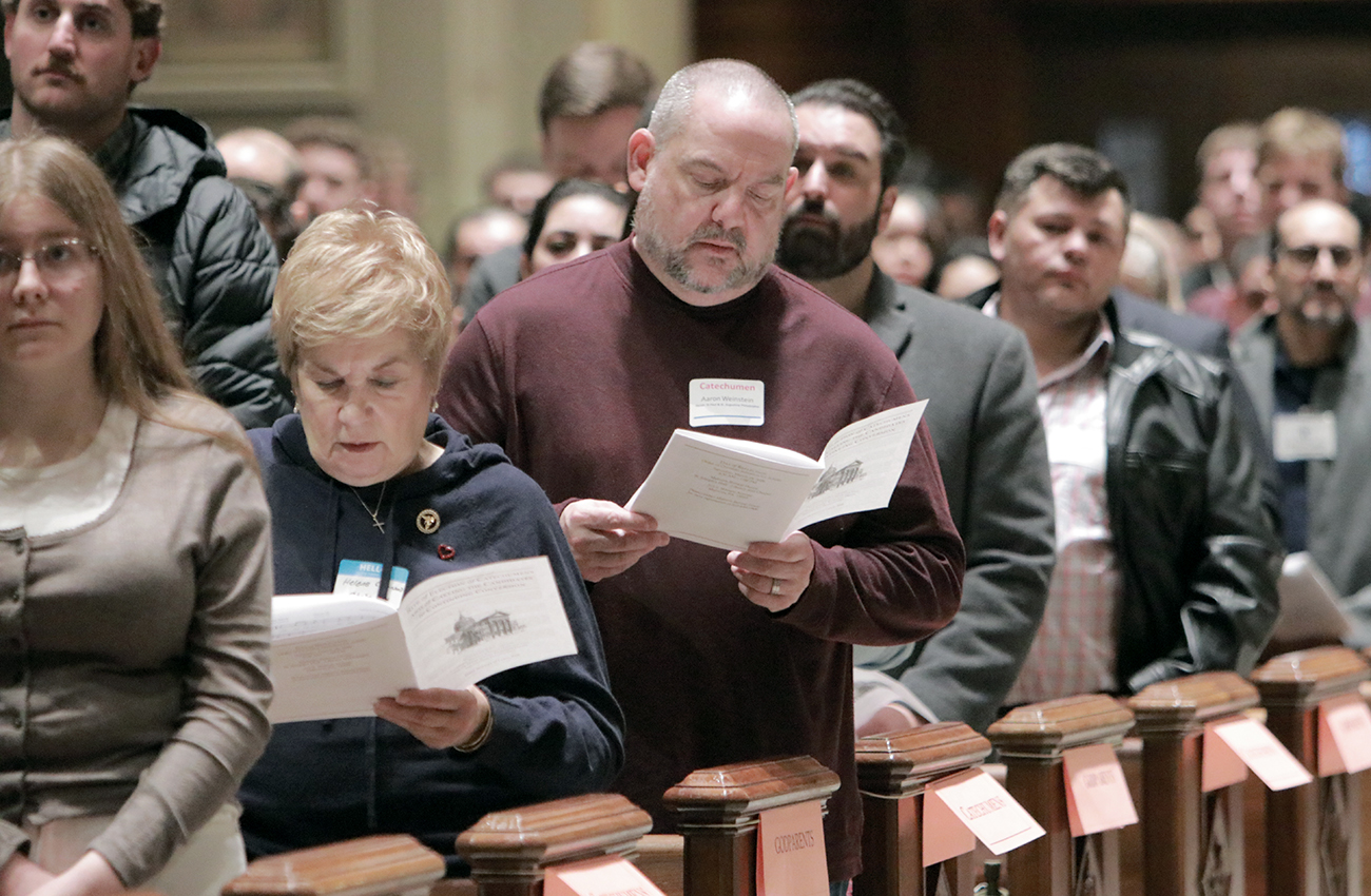 On the first Sunday of Lent, more than 1,150 people preparing to enter full communion with the Catholic Church this Easter received a welcome and blessing from Archbishop Pérez during Rite of Election liturgies Feb. 21-22 at the Cathedral Basilica of Saints Peter and Paul.