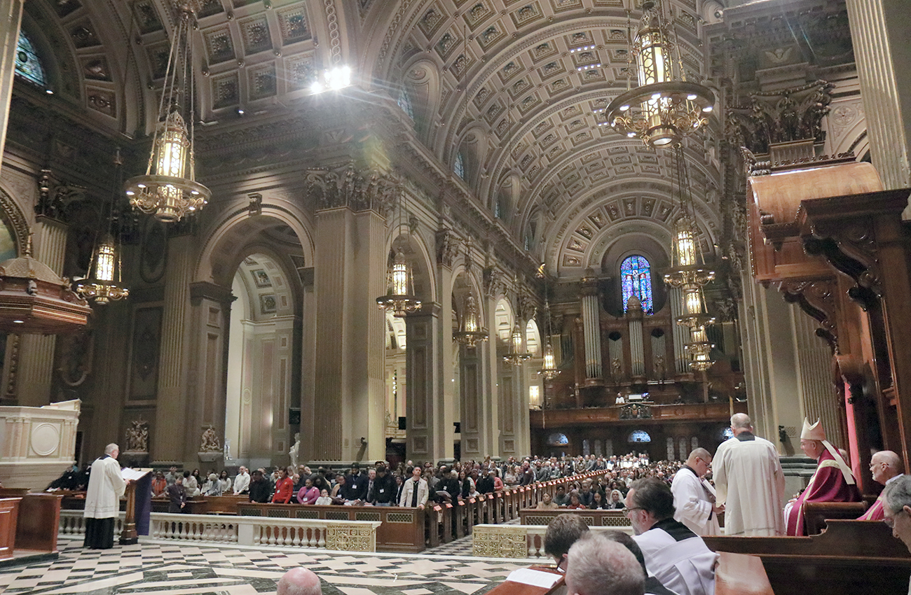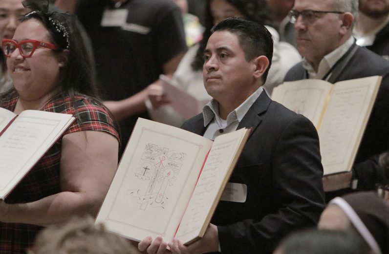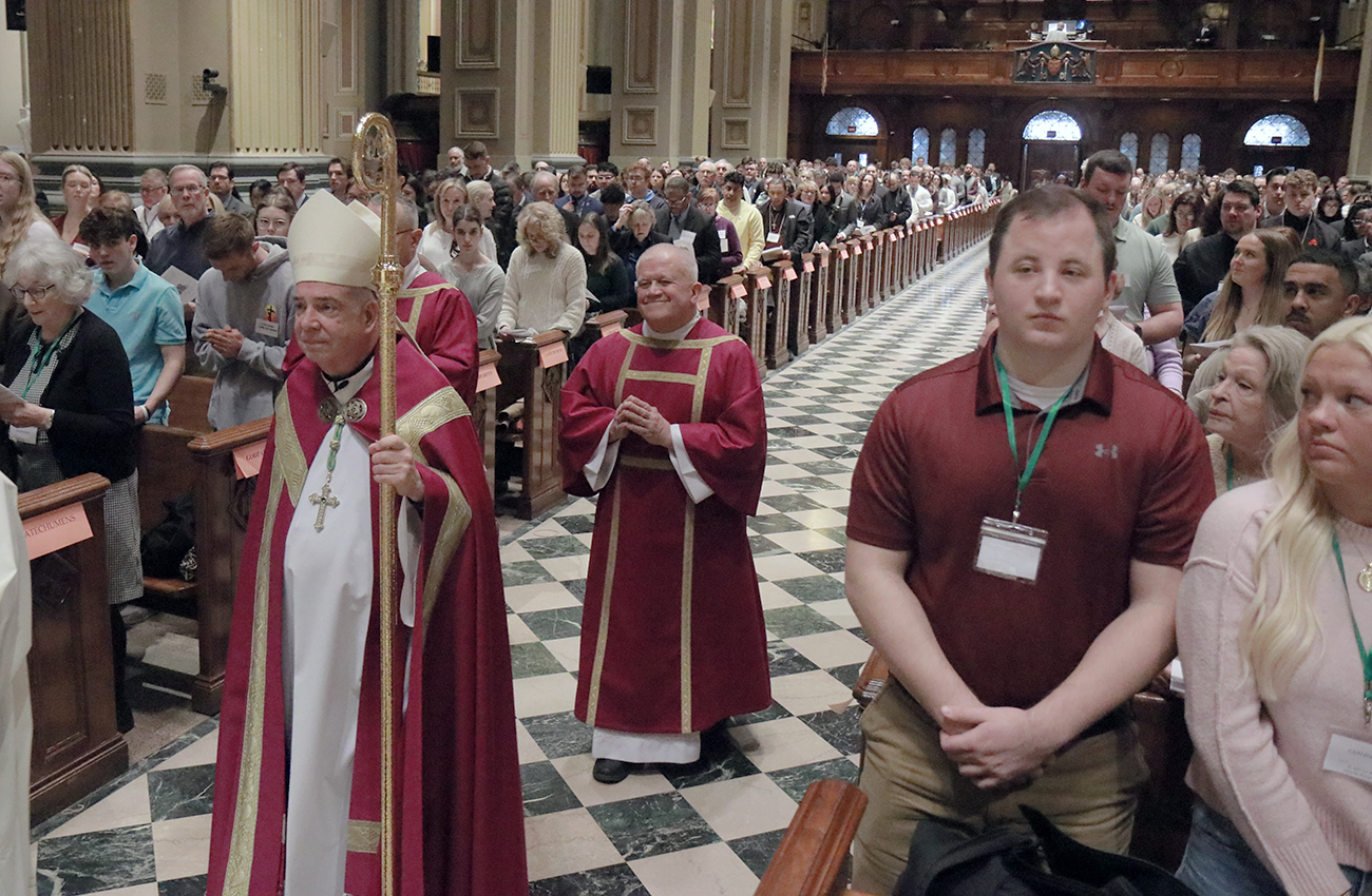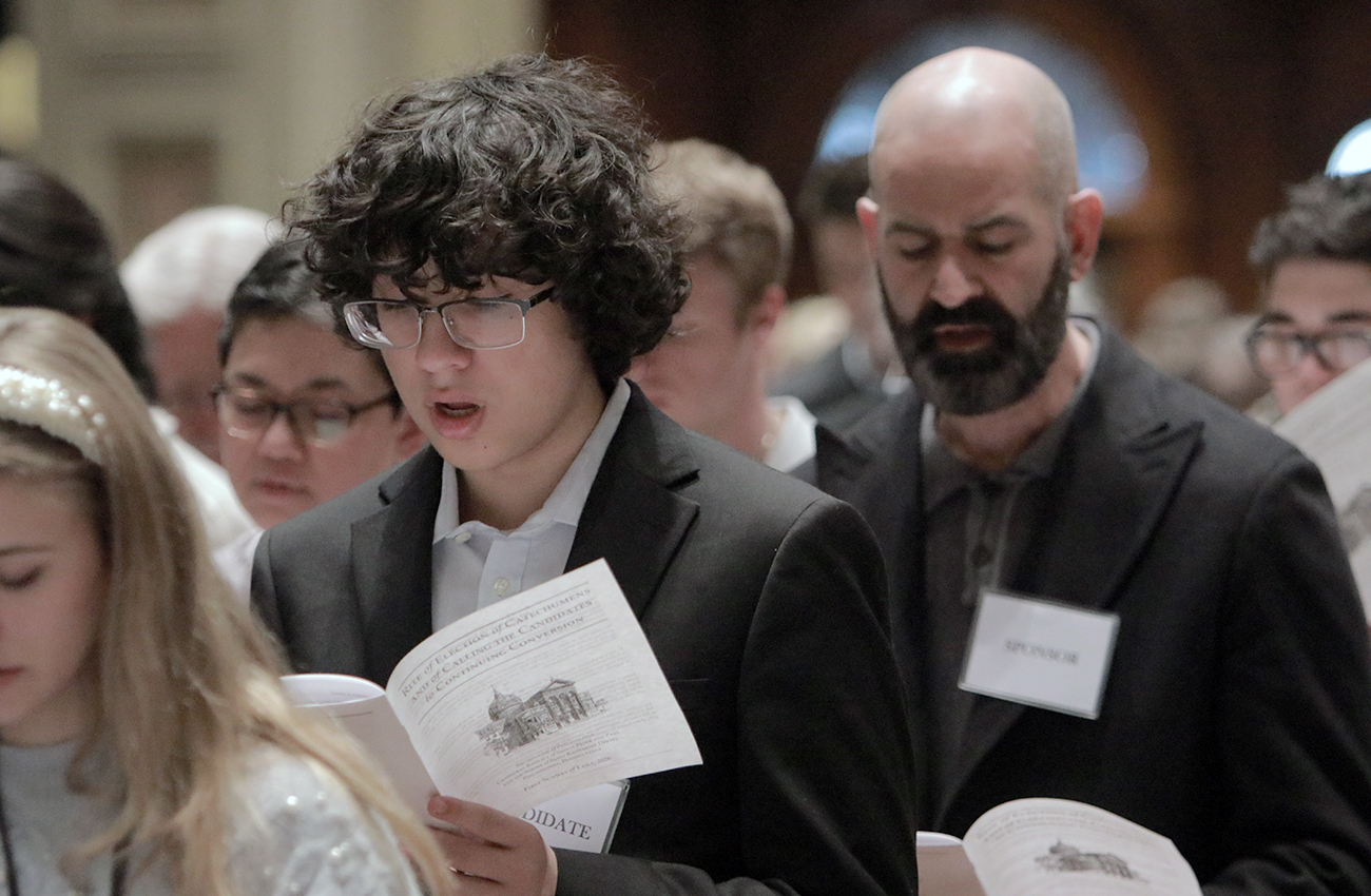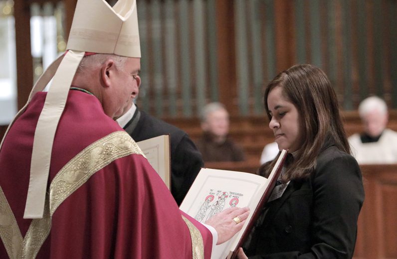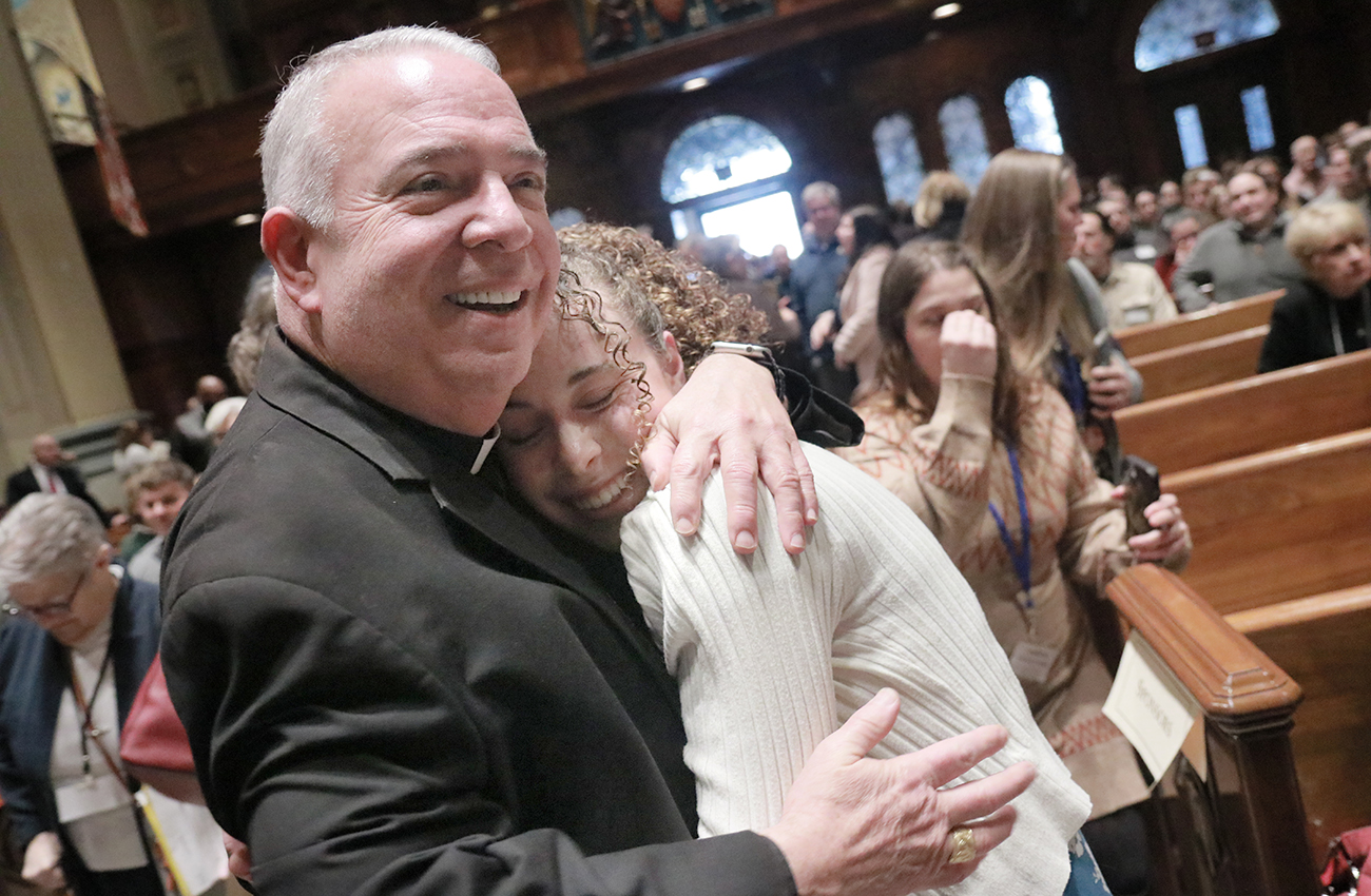 On the first Sunday of Lent, more than 1,150 people preparing to enter full communion with the Catholic Church this Easter received a welcome and blessing from Archbishop Pérez during Rite of Election liturgies Feb. 21-22 at the Cathedral Basilica of Saints Peter and Paul.