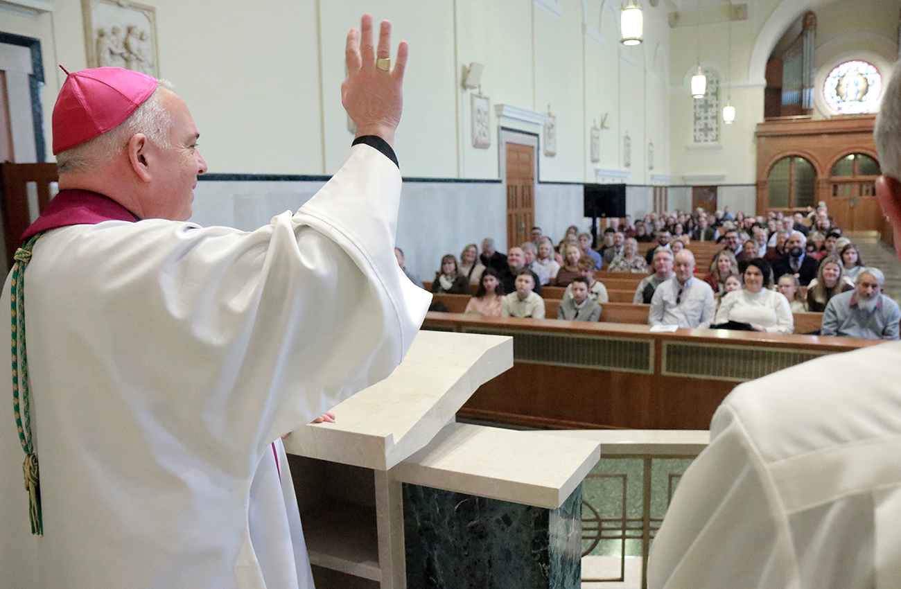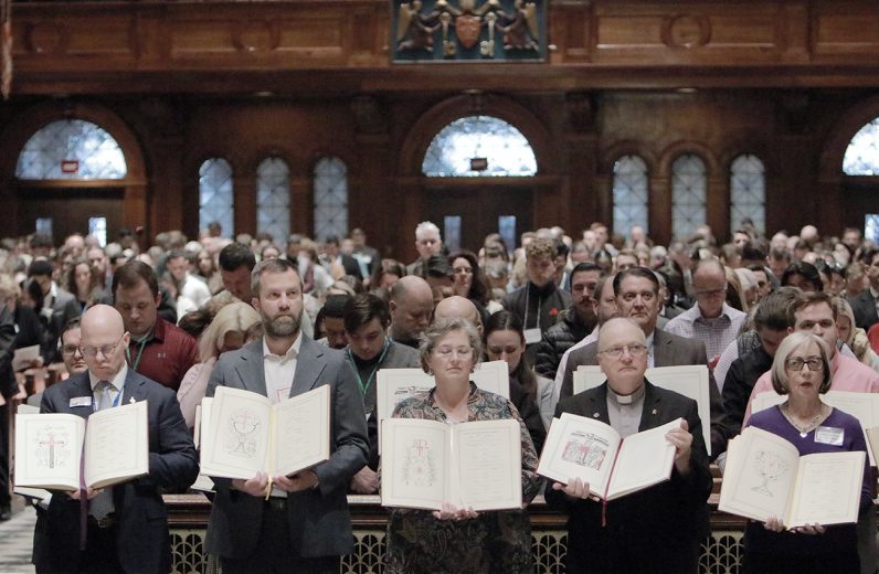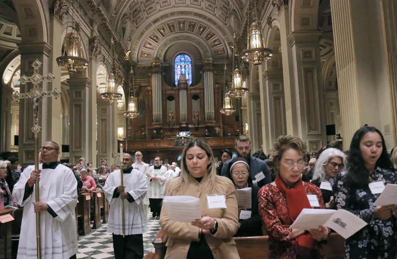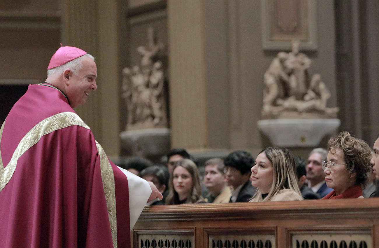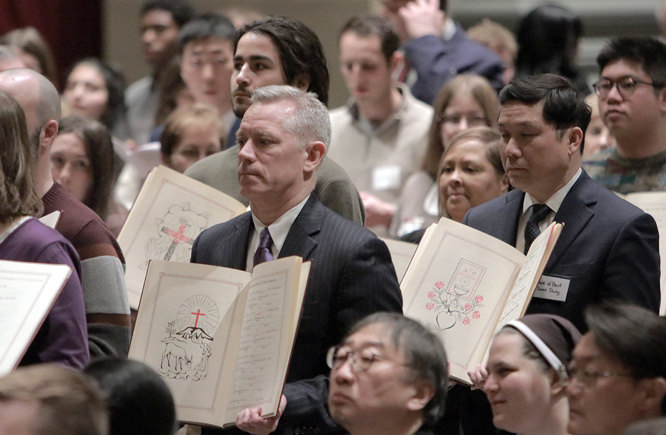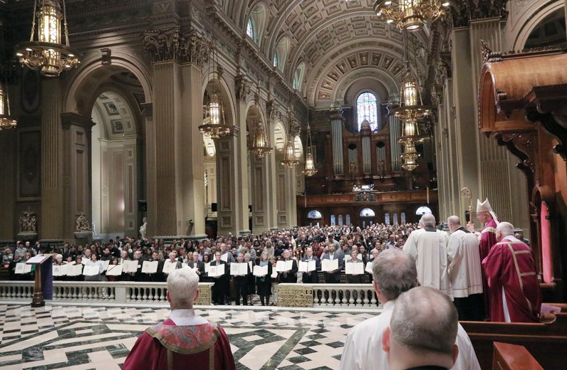 On the first Sunday of Lent, more than 1,150 people preparing to enter full communion with the Catholic Church this Easter received a welcome and blessing from Archbishop Pérez during Rite of Election liturgies Feb. 21-22 at the Cathedral Basilica of Saints Peter and Paul.