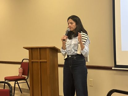 Augustine began her talk by reminding everyone that Christians are called to evangelize through their baptism. She grew up in Connecticut and attended the University of Connecticut. She was sent on a mission to Austin, Texas and saw many cultural differences in how those residents spoke about God.