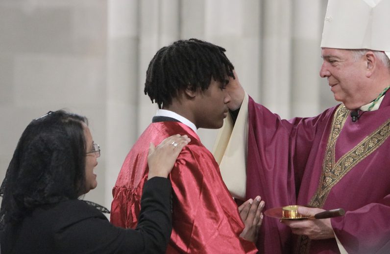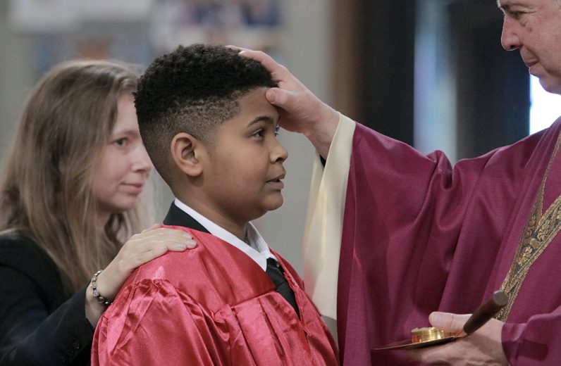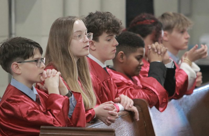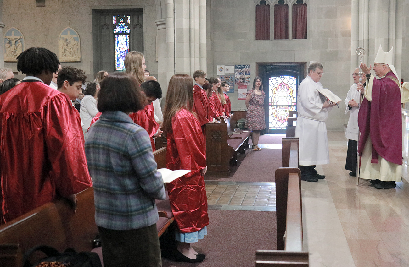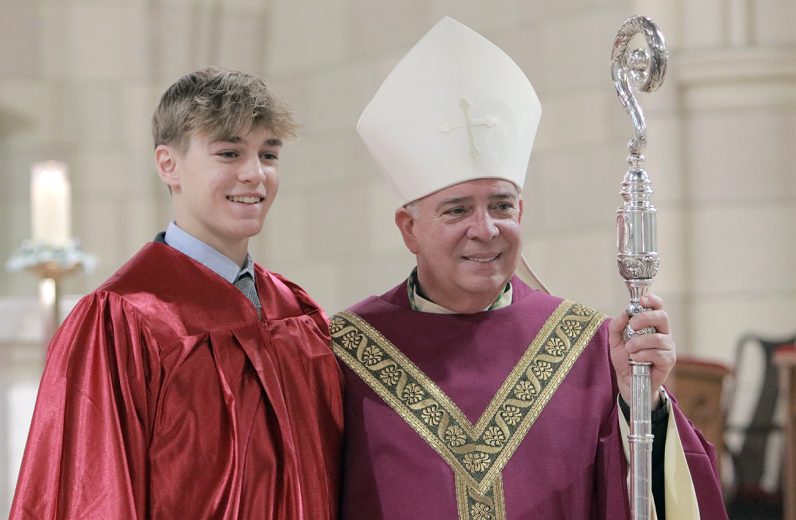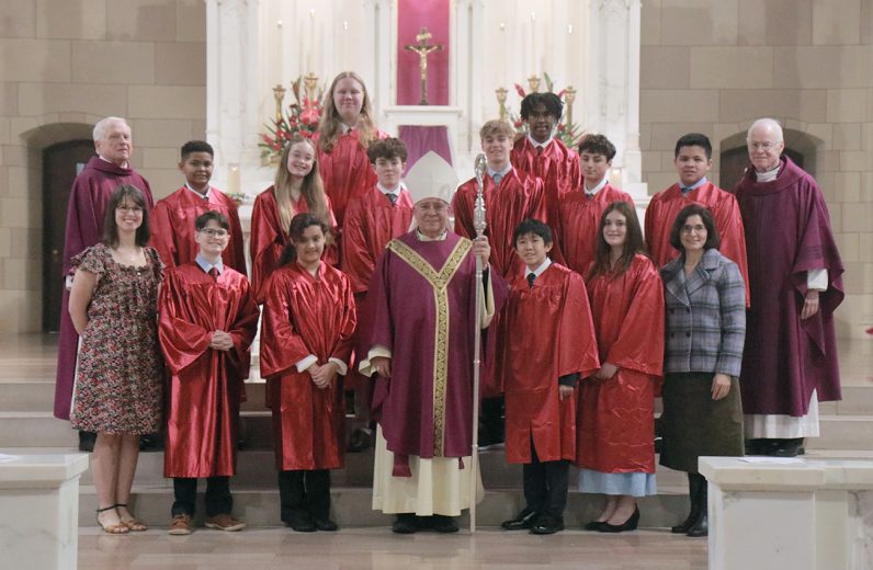 Twelve young Catholics received the sacrament of confirmation conferred by Archbishop Nelson Pérez as he celebrated Mass March 8 in Ardmore joined by pastor Rev. John J. Ames. St. Colman Church is located at 11 Simpson Road in Ardmore – learn more at stcolmanardmore.com. (Photos by Sarah Webb)