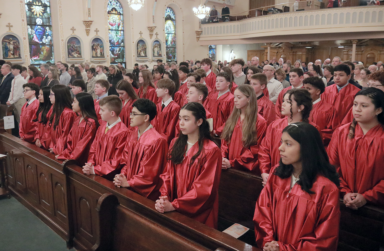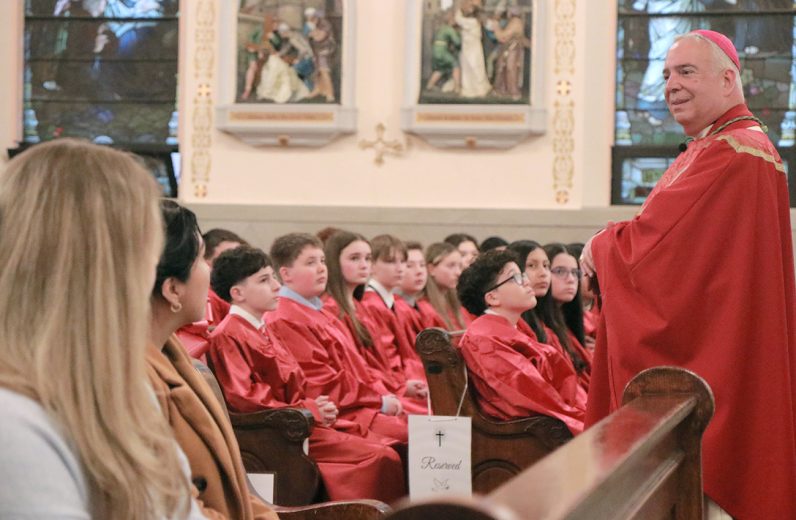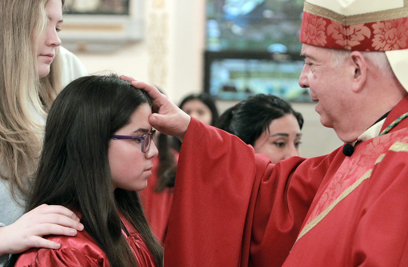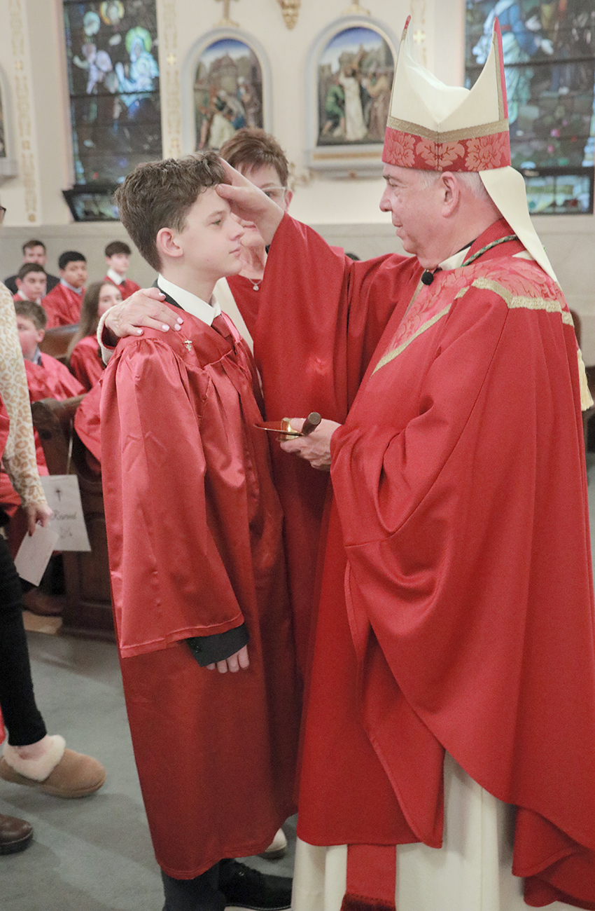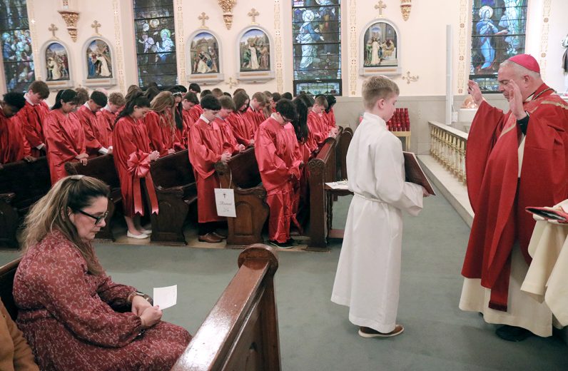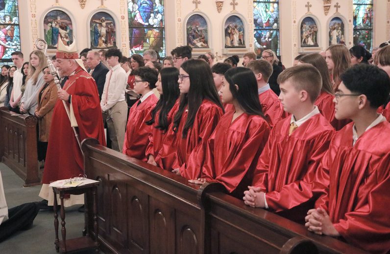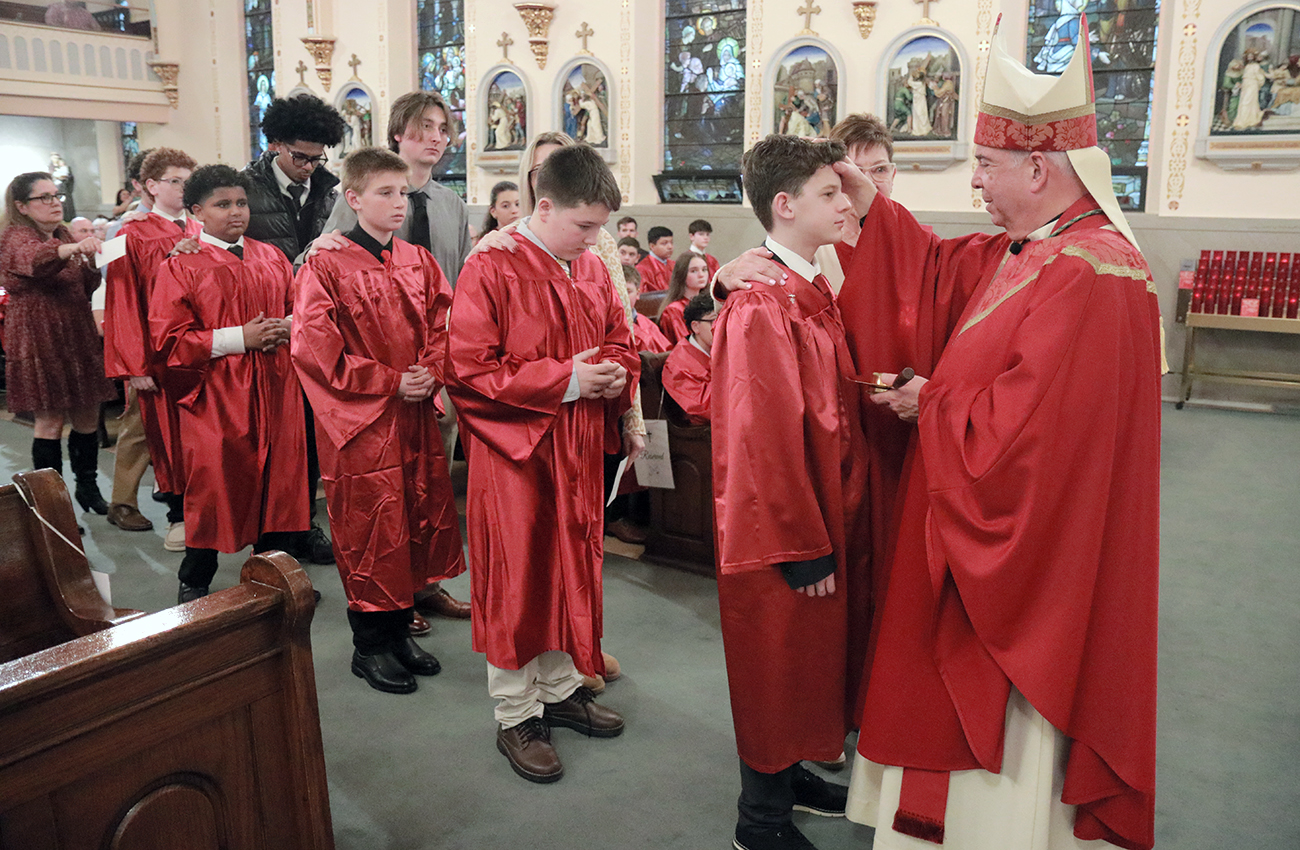 Approximately 39 young Catholics received the sacrament of confirmation conferred by Archbishop Nelson Pérez as he celebrated Mass March 5 in Bucks County joined by pastor Rev. Dennis M. Mooney. St. Mark Church is located at 1025 Radcliffe Street in Bristol – learn more at saintmarkchurch.net(Photos by Sarah Webb)