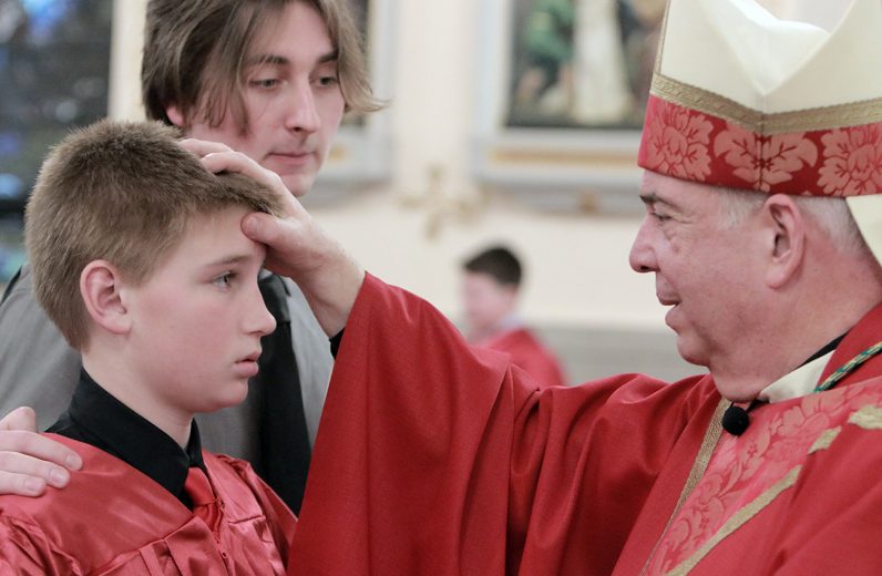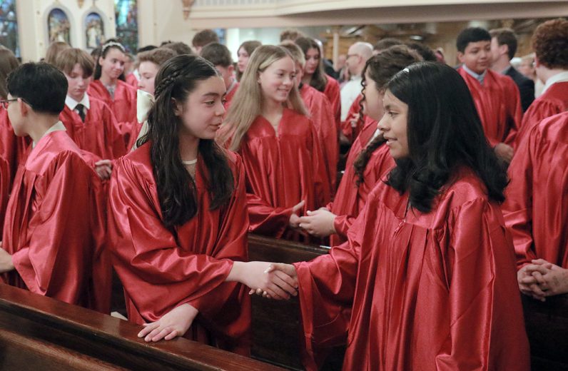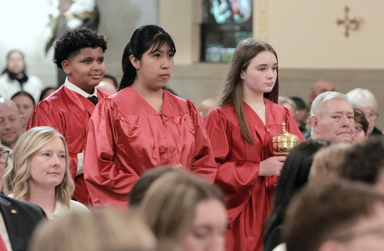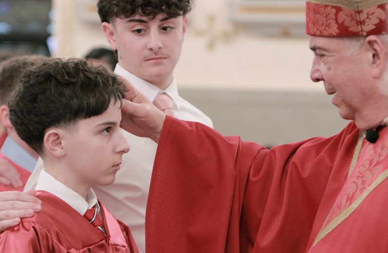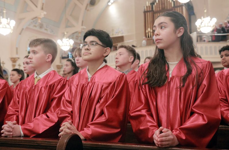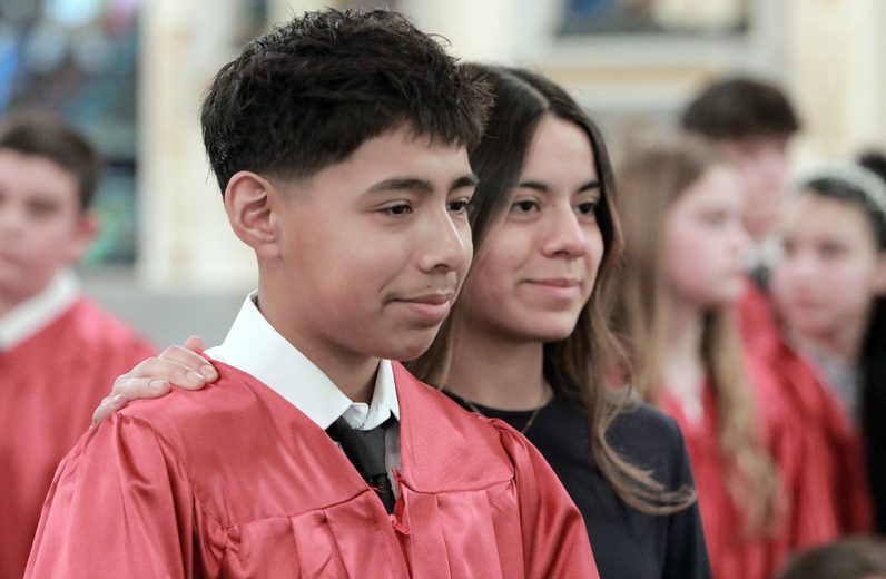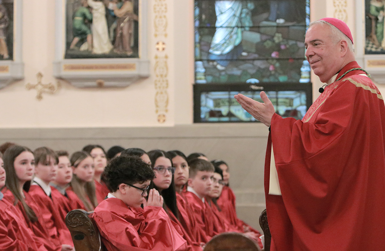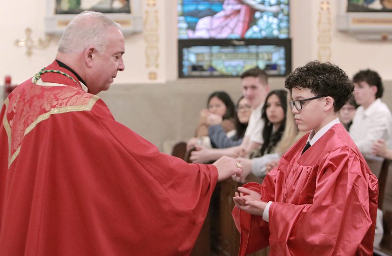 Approximately 39 young Catholics received the sacrament of confirmation conferred by Archbishop Nelson Pérez as he celebrated Mass March 5 in Bucks County joined by pastor Rev. Dennis M. Mooney. St. Mark Church is located at 1025 Radcliffe Street in Bristol – learn more at saintmarkchurch.net(Photos by Sarah Webb)