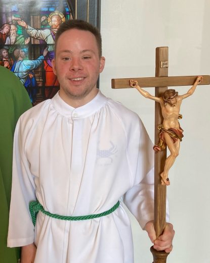 Andrew Santoleri, 30, has been a devoted altar server for 20 years. He serves at Mass seven days a week, primarily at St. Thomas the Apostle Church in Glen Mills, his home parish, and Thursday mornings at St. Cornelius Church in Chadds Ford.
