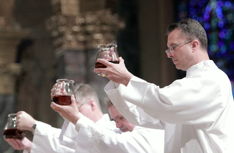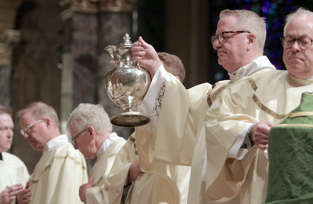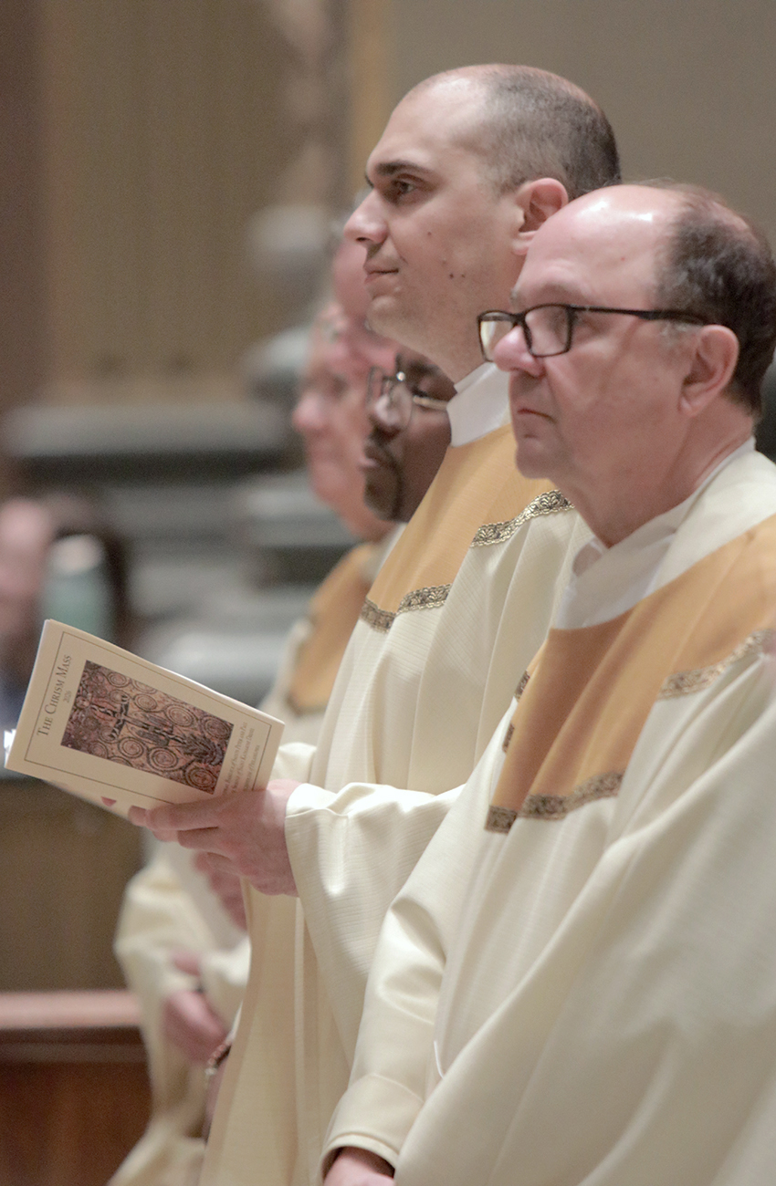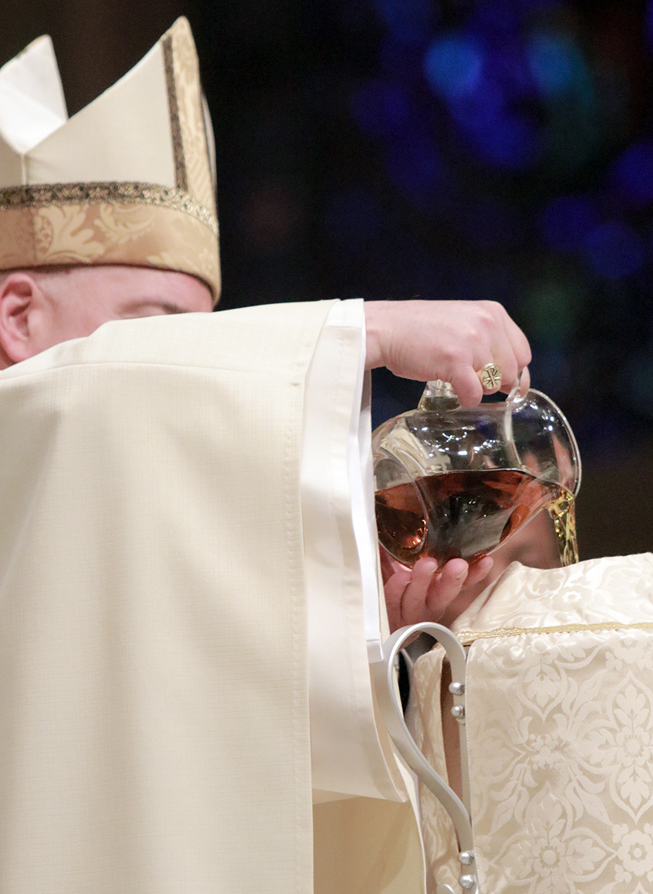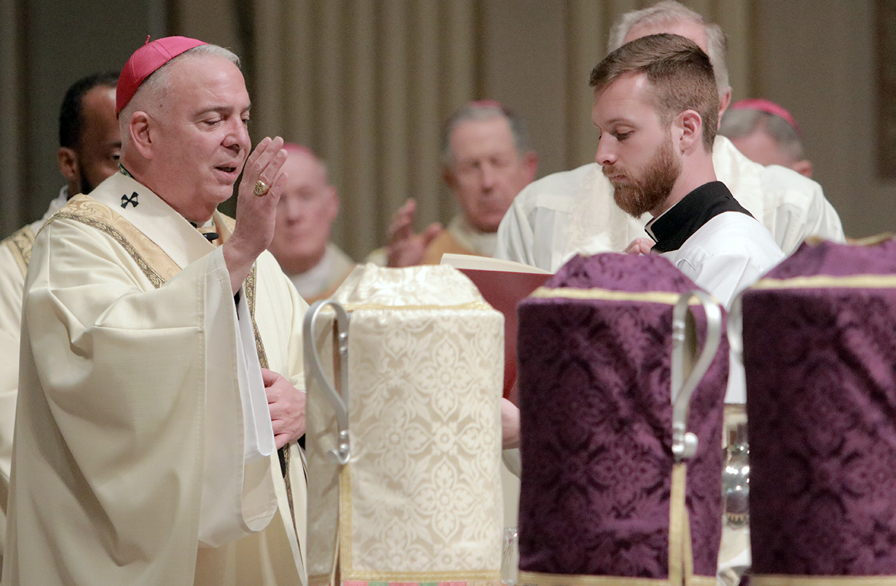 During the liturgy, Archbishop Pérez blessed the Oil of Catechumens and the Oil of the Sick and consecrated the sacred Chrism. These holy oils will be distributed to parishes throughout the archdiocese and used in the celebration of the Sacraments during the coming year. (Photos by Sarah Webb)