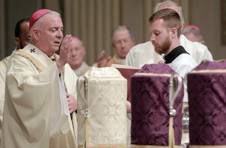 Archbishop Nelson J. Pérez celebrated the annual Chrism Mass on April 2 at the Cathedral Basilica of SS. Peter and Paul in Center City, Philadelphia. Priests from across the Archdiocese of Philadelphia gathered to concelebrate the Mass with the archbishop and to renew their priestly promises.