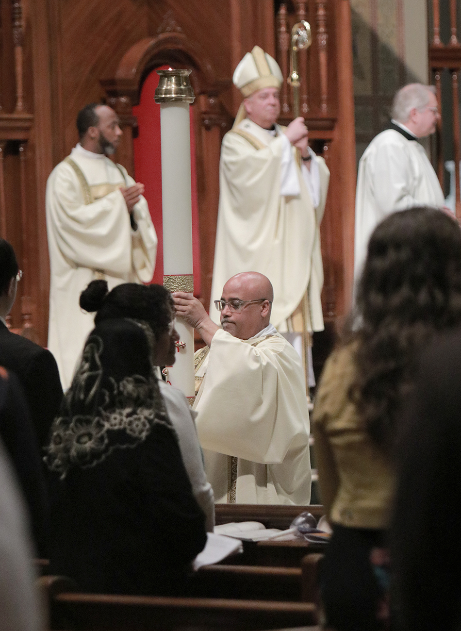 View our photo gallery from the Easter Vigil Mass on Holy Saturday at the Cathedral Basilica of Saints Peter and Paul. The liturgy was celebrated by Archbishop Nelson J. Pérez marking the Resurrection of the Lord with solemn beauty and joyful hope. (Photos by Sarah Webb)