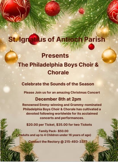 Kick off the Christmas season with the Emmy winning and Grammy nominated Philadelphia Boys Choir and Chorale at St. Ignatius of Antioch Parish in Yardley.