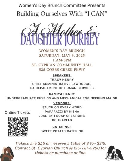 Join St. Cyprian Church on May 3 for the Women’s Day Brunch, featuring inspiring speakers, local vendors, and delicious food.