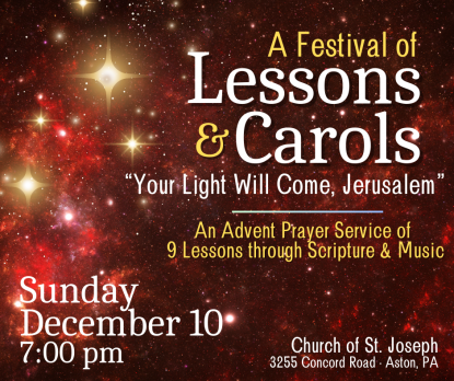 St. Joseph Parish, Aston, to Host Festival of Lessons and Carols Dec. 10
