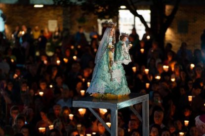 An estimated 5,000 pilgrims, mostly Iraqi Christians, gathered at the National Shrine of Our Lady of Consolation for a candlelight procession and Mass on the vigil of the feast of the Assumption.
