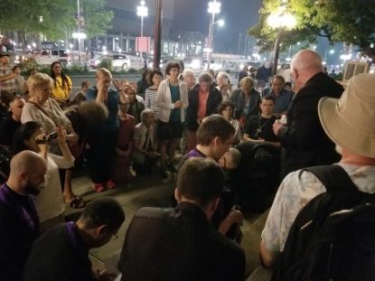 About 200 people, most clutching a rosary, held a prayer vigil as a satanic black mass occurred Aug. 17 at a heavy metal club in the Canadian capital.
