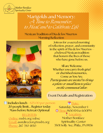 Marigolds & Memory offers a morning of reflection and healing on Nov. 1 at the Mother Boniface Spirituality Center in Northeast Philadelphia.