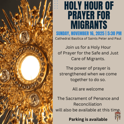 The Cathedral Basilica of Saints Peter and Paul will host a Holy Hour on Nov. 16 at 5:30 p.m. to pray for the safe and just care of migrants.