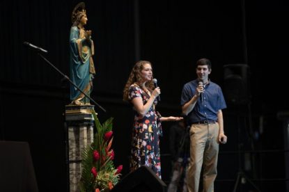 Drew and Kim Dillingham, parishioners of Immaculate Conception Parish in Washington, spoke to World Youth Day pilgrims about marriage during a Jan. 23, 2019, Fiat festival in Panama City.