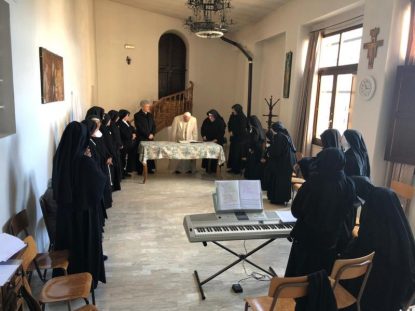 Pope Francis visited the monastery of Santa Maria di Vallegloria in Spello, about 100 miles north of Rome, to encourage the sisters and to share prayer, the Eucharist and a meal with them.