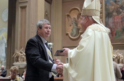 The Office for Catechetical Formation gathered at the Cathedral Basilica on Jan. 10 to honor catechists marking milestone years of service and to present the St. Paul VI Award to Msgr. Daniel J. Kutys.